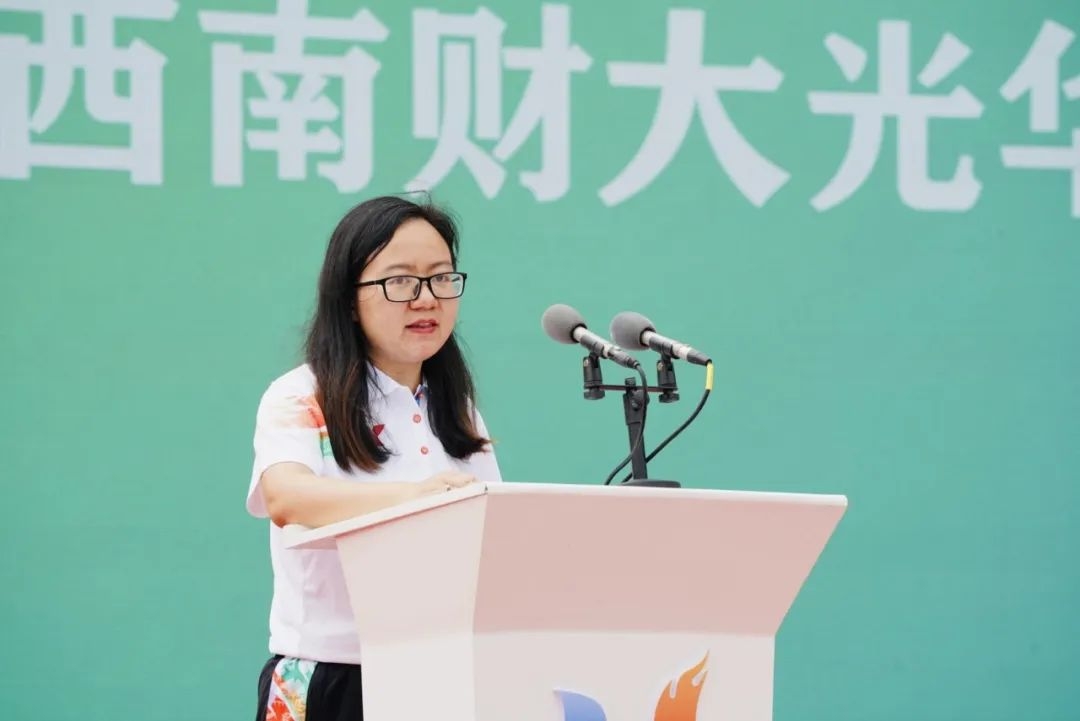 光華排球場館中心志愿者組組長、共青團青羊區委副書記艾林佩在講話中對我校光華校區場館籌備工作表示充分肯定,對我校志愿者在專業培訓、賽會籌備過程中的優異表現給予高度評價。她希望西財志愿者以夢想為名、以青春為名、以大運為名,在大運會中彰顯青年志愿者永不言敗的精神,在志愿服務實踐中書寫青春答卷,向世界展示中國風格、巴蜀特色、青羊內涵。