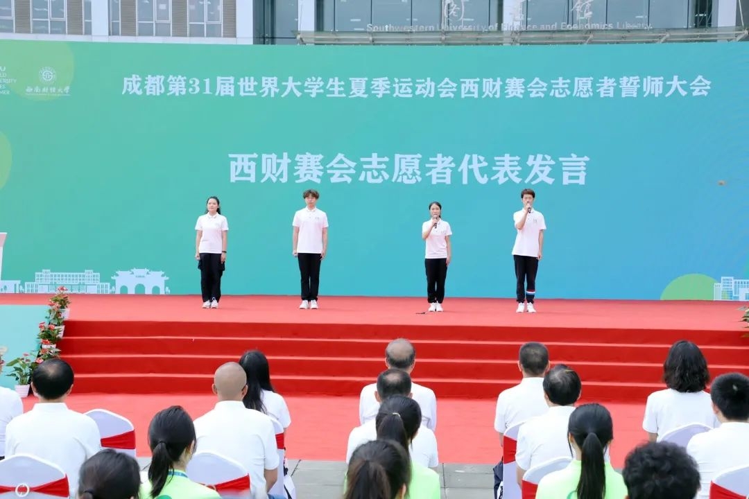 7月14日上午,成都大運會西南財經大學賽會志愿者誓師大會在柳林校區濟民廣場隆重舉行。學校黨委副書記、校長李永強出席大會,西南財大光華排球場館中心及學校大運會工作組相關負責人、相關學院(研究院)負責人、全體西財賽會志愿者參加大會。