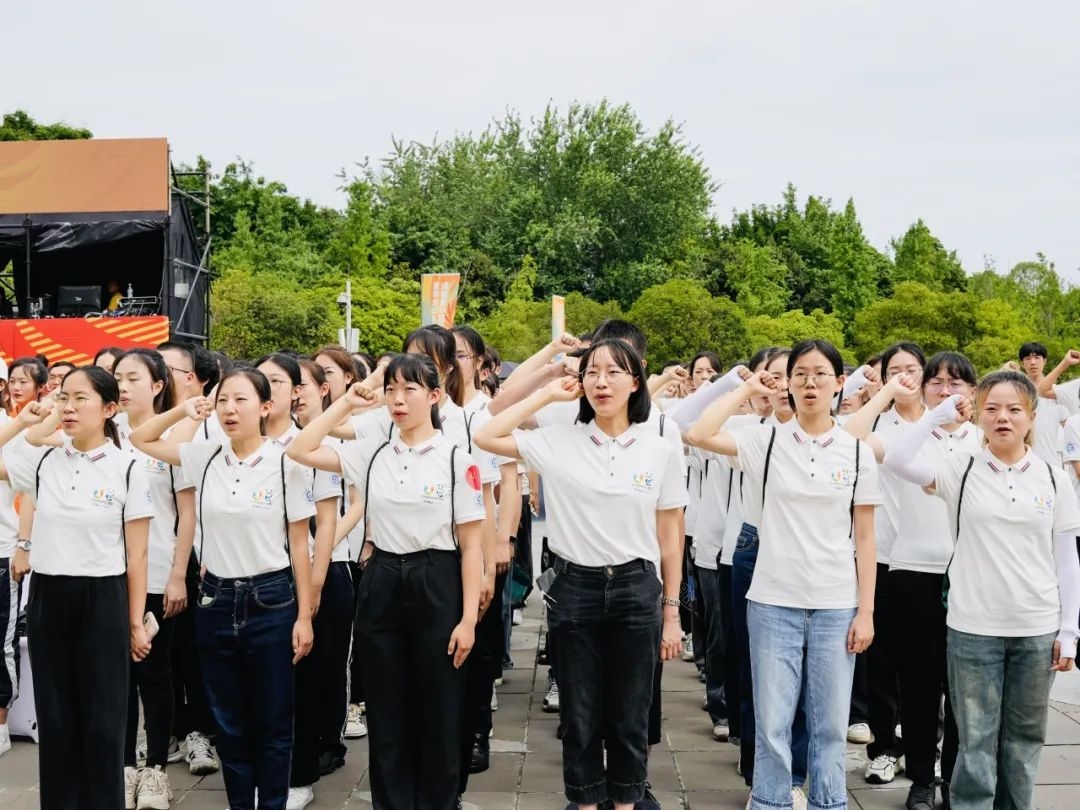 全體西財志愿者在領誓員的帶領下集體宣誓:“我志愿加入成都大運會志愿者行列,使命重大,任務光榮!我將做到:牢記囑托,勇擔使命....”鏗鏘有力的誓言彰顯了廣大西財青年助力成都大運會的挺膺擔當。