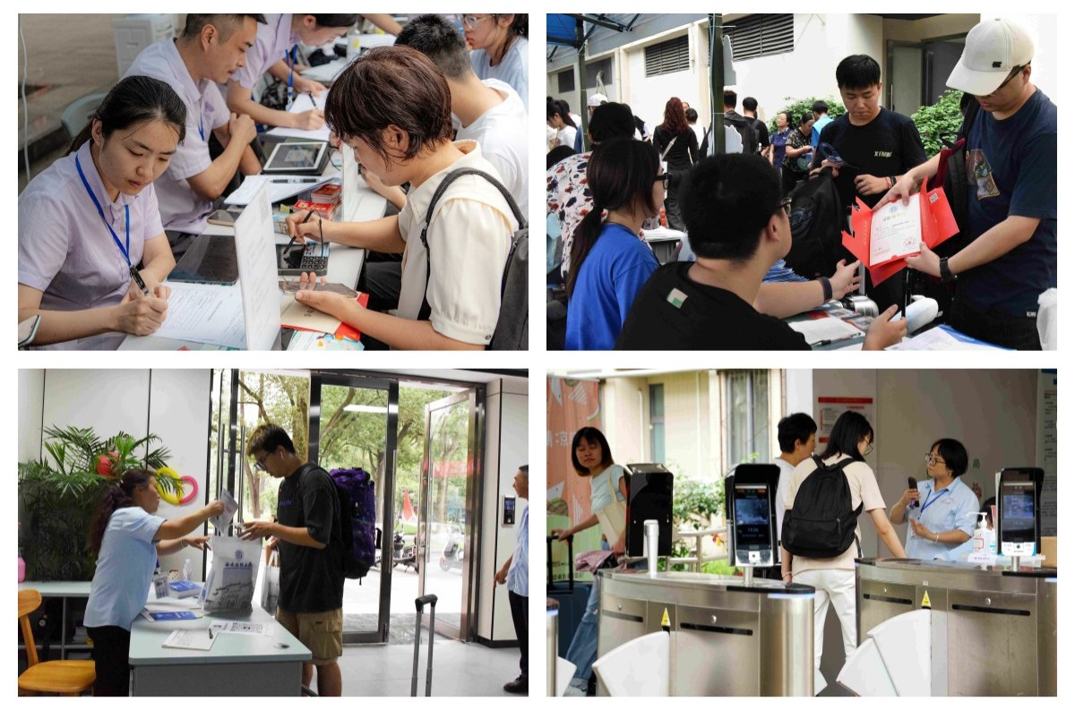 “你們從哪里來?”“一路辛苦了!”“陪爸爸媽媽一起逛逛校園!”“請放心地把孩子交給我們!”趙德武關切地詢問路途情況,并向新生和家長送上親切問候與祝福。在學院(研究院)迎新報到點位、專項工作點位,趙德武仔細了解工作情況、翻閱工作資料,對師生員工的辛勤工作表示充分肯定,并希望大家要以學生為中心,同心協力做好各項服務保障,高標準高質量完成迎新工作。