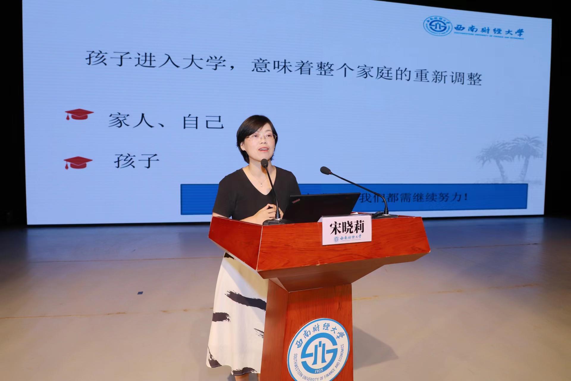 隨后,心理健康教育中心副主任宋曉莉以“在愛中共同成長”為主題從家長心理調適、學生心理成長、學校心理資源三個方面進行分享,幫助家長了解學生情況、協助學生盡快適應大學生活、預防心理危機。