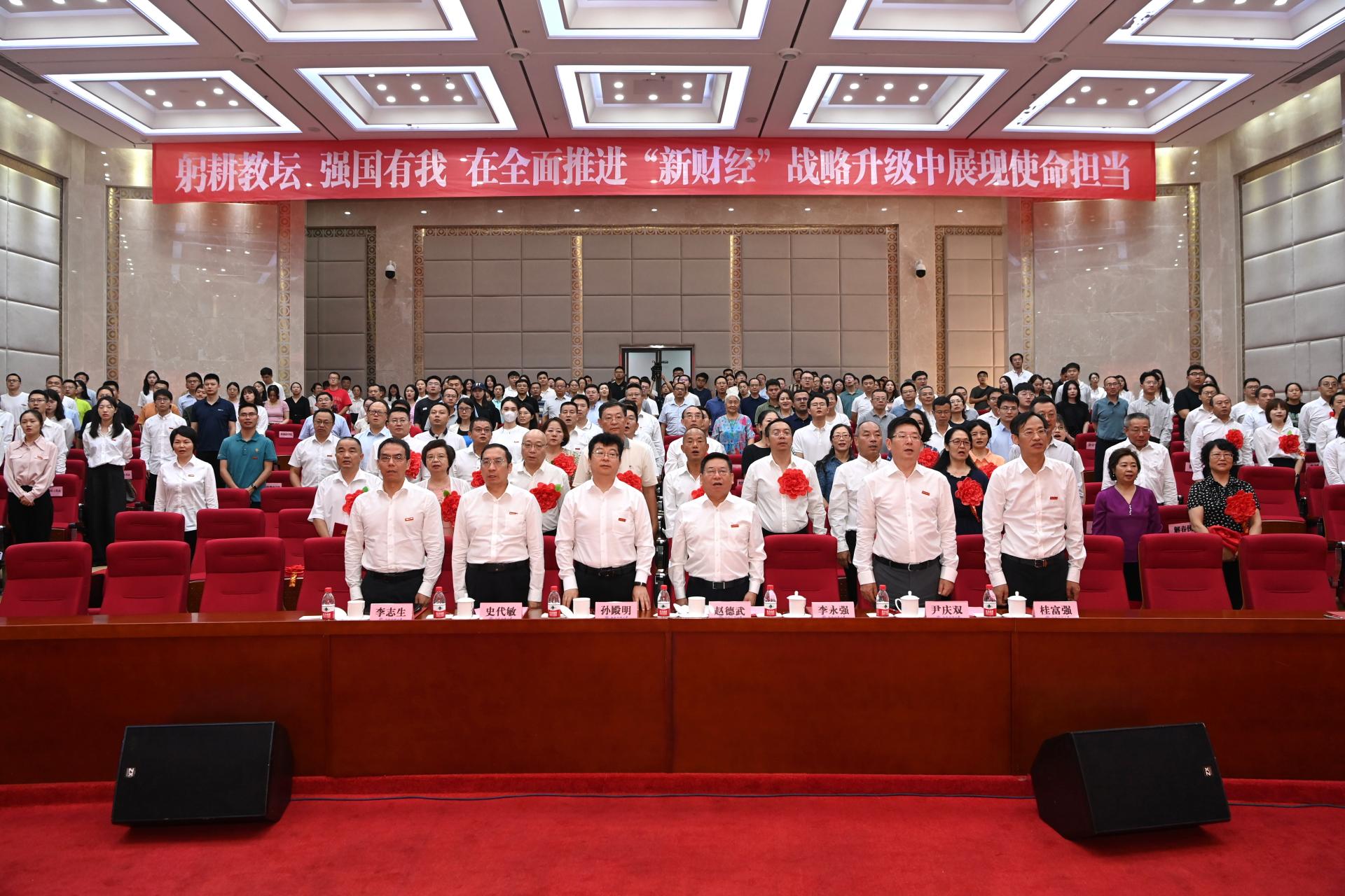李永強(qiáng)在主持會(huì)議時(shí)強(qiáng)調(diào),教師是立教之本、興教之源,是學(xué)校發(fā)展的第一資源。要深刻認(rèn)識(shí)在教育強(qiáng)國、科技強(qiáng)國、人才強(qiáng)國建設(shè)中肩負(fù)的重大使命與責(zé)任,始終沿著習(xí)近平總書記指引的方向前進(jìn),不斷傳承和弘揚(yáng)教育家精神,將“躬耕教壇、強(qiáng)國有我”的志向抱負(fù),有力轉(zhuǎn)化為扎根中國大地、潛心育人、嚴(yán)謹(jǐn)治學(xué)的實(shí)際行動(dòng),為教育強(qiáng)國建設(shè)貢獻(xiàn)更大的智慧和力量。要認(rèn)真回答“培養(yǎng)什么人、怎樣培養(yǎng)人、為誰培養(yǎng)人”這一根本問題,以培養(yǎng)擔(dān)當(dāng)民族復(fù)興大任的時(shí)代新人為己任,教書育人、培根鑄魂,爭做“四有好老師”和“四個(gè)引路人”,爭當(dāng)“傳道授業(yè)解惑”的“經(jīng)師”和“人師”,成為塑造學(xué)生品格、品行、品味的“大先生”。要準(zhǔn)確把握共迎百年、奮進(jìn)一流的歷史方位和發(fā)展要求,厚植愛校榮校興校情感,傳承光榮傳統(tǒng)、涵養(yǎng)西財(cái)情懷,聚焦聚力“新財(cái)經(jīng)”戰(zhàn)略升級,為百年西財(cái)匯聚奮進(jìn)力量,為加快建設(shè)財(cái)經(jīng)特色鮮明的世界一流大學(xué)作出新的更大貢獻(xiàn)。