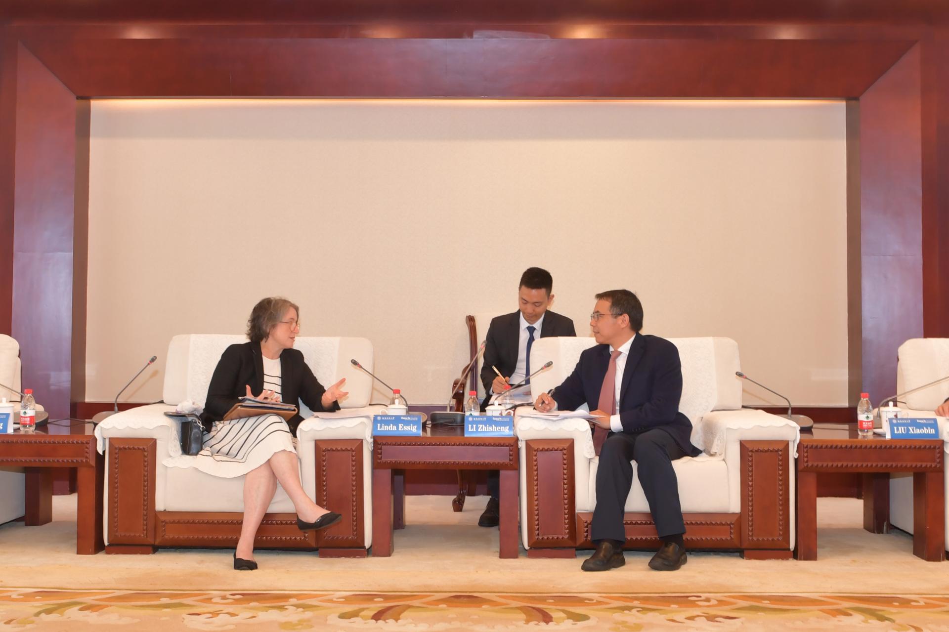 9月12日,紐約城市大學(xué)巴魯學(xué)院教務(wù)長兼高級(jí)副校長Linda Essig、巴魯學(xué)院杰克林商學(xué)院國際項(xiàng)目專員Yan Rong一行訪問我校。黨委常委、副校長李志生在騰驤樓貴賓廳會(huì)見了來賓。會(huì)計(jì)學(xué)院、國際交流與合作處相關(guān)負(fù)責(zé)人參加了會(huì)談。