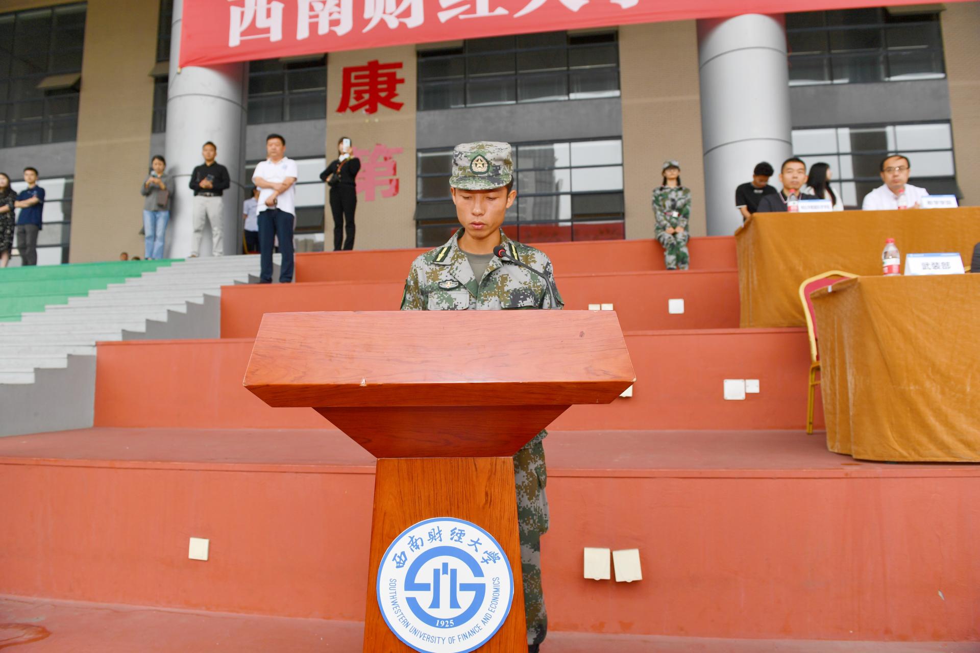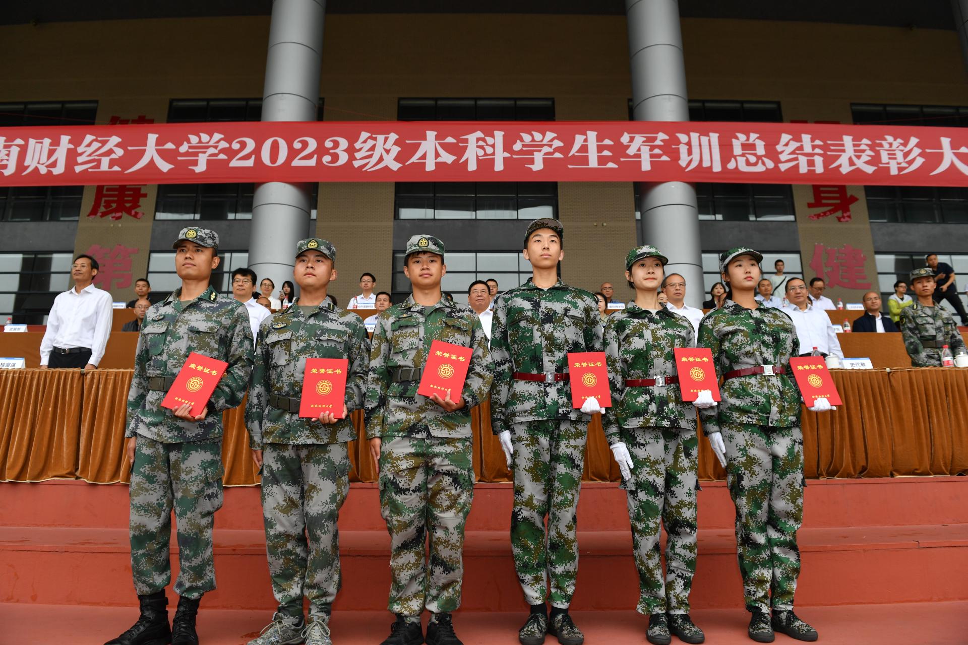 總結表彰大會上,軍訓團團長孫浩鋼宣讀了《嘉獎令》。本次軍訓共評選出409名“優(yōu)秀學員”、12名“優(yōu)秀教官”。校領導為獲獎代表頒發(fā)了榮譽證書,軍訓優(yōu)秀學員代表財政稅務學院學生章托同學作了發(fā)言。