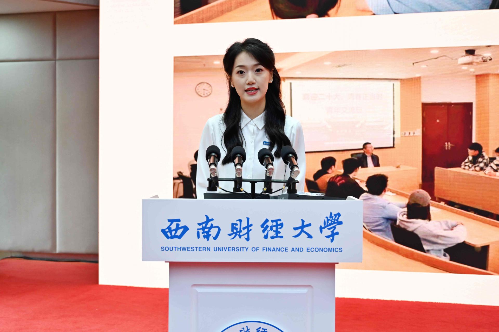 受表彰的三好學生代表王怡焯、優秀學生干部代表李瀟、先進班集體班長代表秦玥結合自身學習生活經歷進行先進事跡分享交流,號召廣大西財學子傳承“經世濟民、孜孜以求”西財精神,把奮斗作為青春最亮麗的底色,在追夢的道路上實現自我,為寫好中國式現代化教育西財篇章貢獻青春力量。