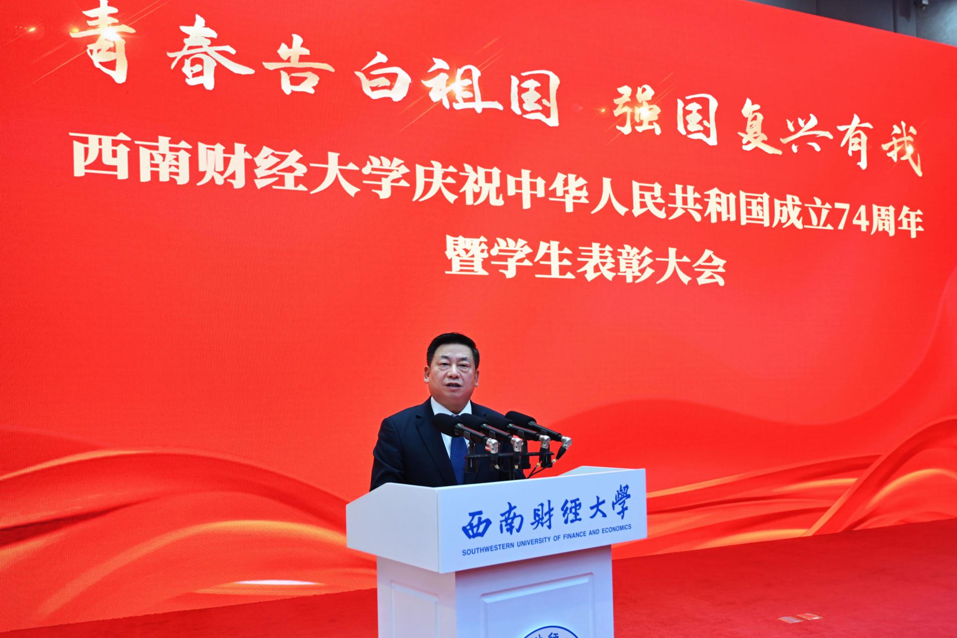 李永強在主持會議時指出,西財學子要牢記奮斗是青春最亮麗的底色,行動是青年最有效的磨礪,堅定理想信念、堅守初心使命、堅持實干爭先,以開拓進取、久久為功的奮進姿態激發新作為,以時不我待、只爭朝夕的精神面貌擔當新使命,為書寫中國式現代化教育西財篇章注入青春動能。李永強強調,在中華人民共和國74年波瀾壯闊的發展歷程中,西財與黨同心、與國同行、與時同頻,書寫奮進華章。面向未來,全校干部師生要深刻理解新時代新征程的歷史定位,主動答好“教育強國、西財何為”這一重大命題,全面推進“新財經”戰略升級,共筑一流偉業,共譜百年輝煌,以實際行動向偉大祖國獻禮。