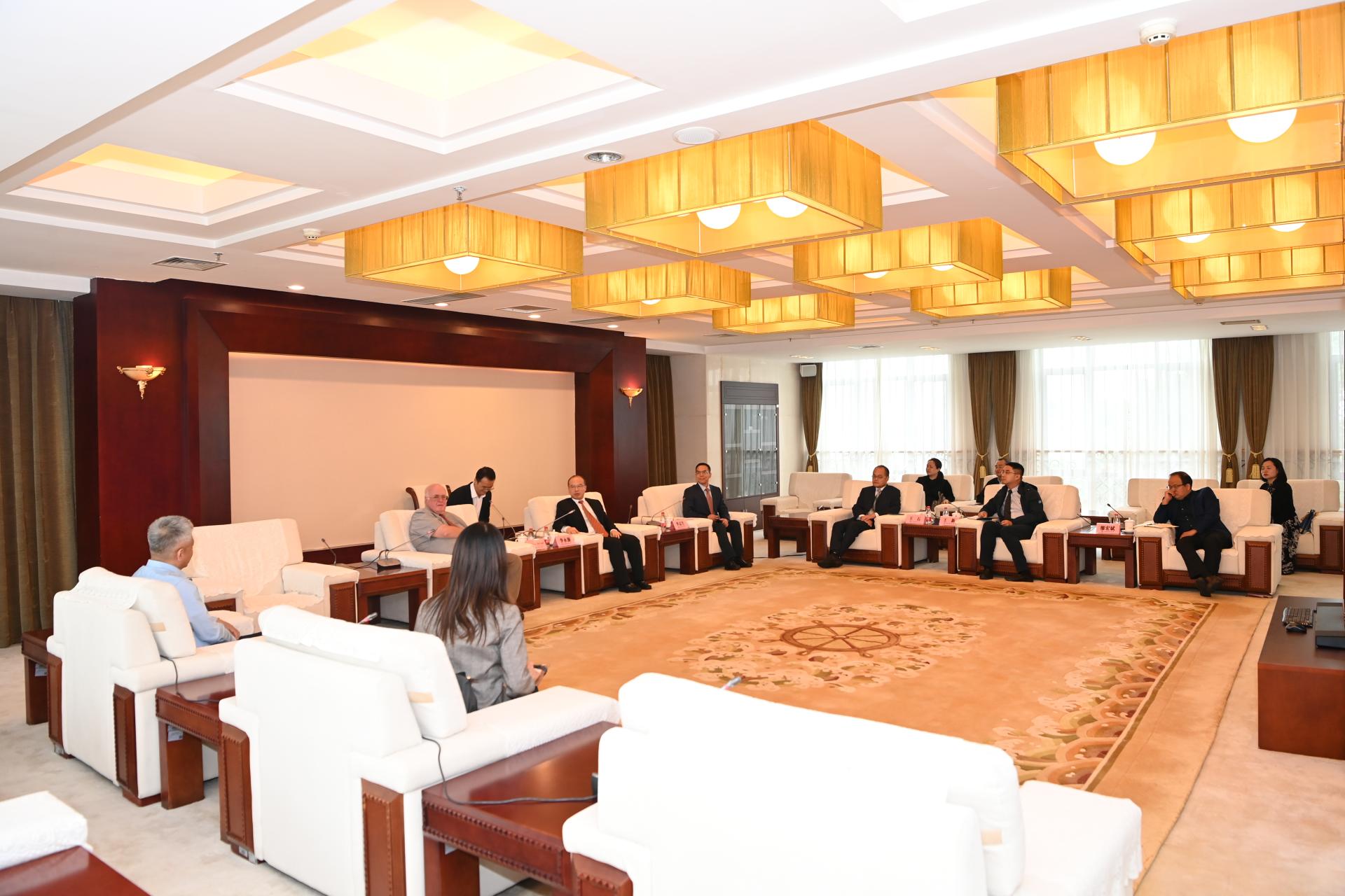 10月13日,美國(guó)德州農(nóng)工大學(xué)特聘教授Bruce A. McCarl訪(fǎng)問(wèn)我校。黨委副書(shū)記、校長(zhǎng)李永強(qiáng),黨委常委、副校長(zhǎng)李志生在騰驤樓貴賓廳會(huì)見(jiàn)來(lái)賓。國(guó)際交流與合作處、“數(shù)字經(jīng)濟(jì)與交叉科學(xué)創(chuàng)新研究院”財(cái)經(jīng)科技集成創(chuàng)新平臺(tái)(園區(qū))、公共管理學(xué)院等單位負(fù)責(zé)人和平臺(tái)“雙碳數(shù)據(jù)開(kāi)發(fā)及能源安全研究團(tuán)隊(duì)”負(fù)責(zé)人參加會(huì)談。