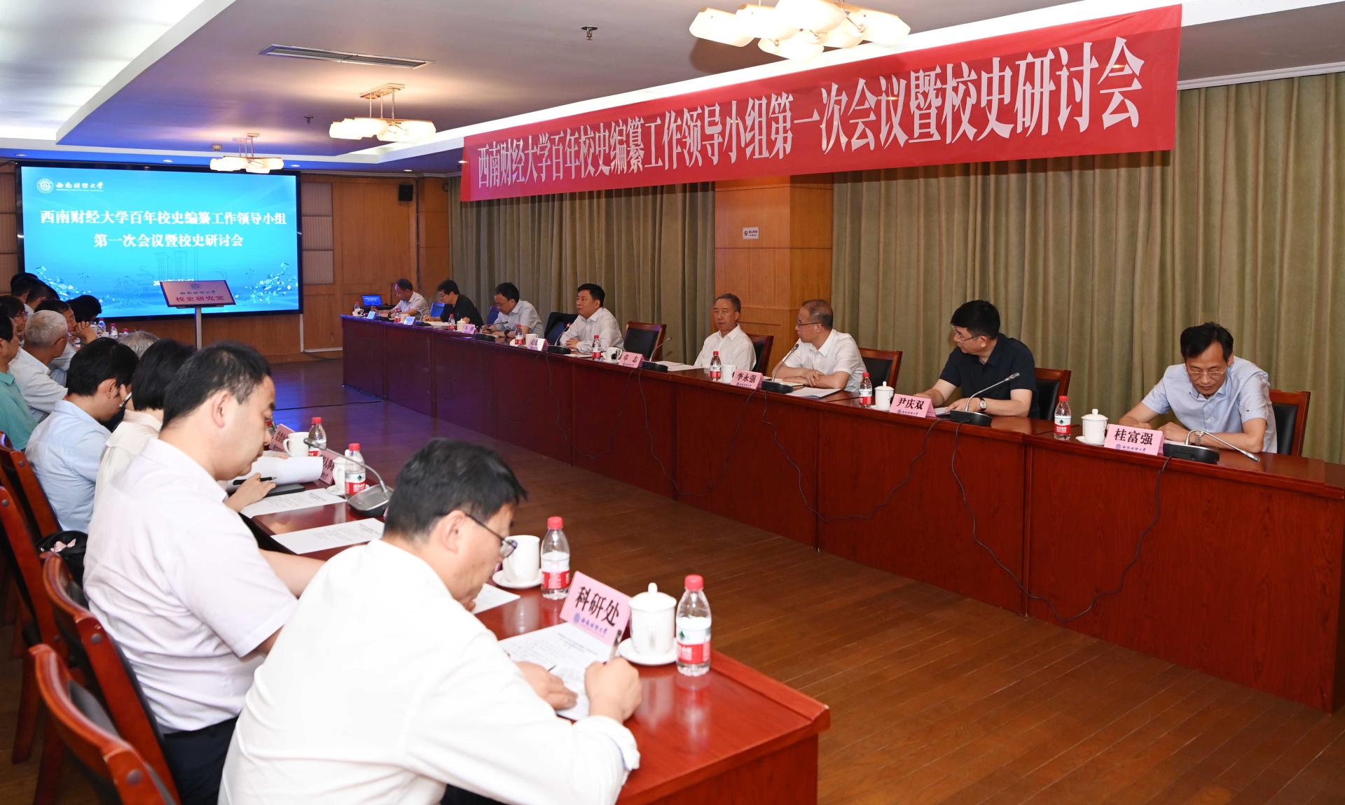 在學校建校98周年之際,6月6日下午,學校在光華樓601會議室召開百年校史編纂工作領導小組第一次會議暨校史研討會,深入學習貫徹習近平總書記關于歷史的重要論述,深入學習習近平總書記在中央政治局第五次集體學習上的重要講話精神和習近平總書記在文化傳承發展座談會上的重要講話精神,揭牌成立校史研究室,交流研討百年校史編纂工作。百年校史編纂工作領導小組組長、黨委書記趙德武和黨委副書記、校長卓志,黨委副書記馬驍,黨委副書記、副校長李永強,黨委副書記、紀委書記孫殿明,黨委常委、副校長尹慶雙、張邦富、桂富強,學校老領導曾道榮、離退休教師代表、相關職能單位負責人出席會議。會議由卓志主持。