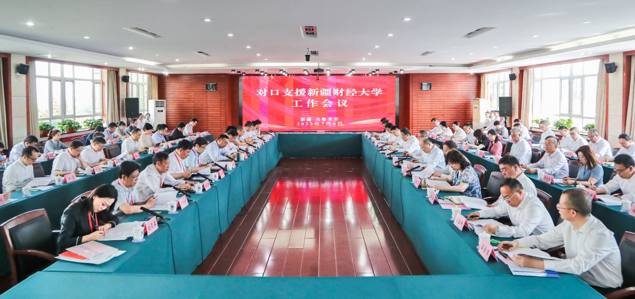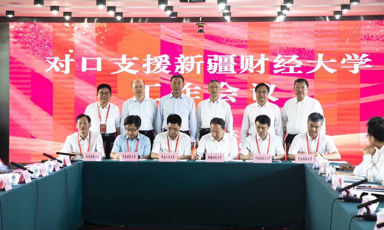 7月6日,對口支援新疆財經大學工作會議在新疆財經大學舉行。新疆維吾爾自治區黨委副書記、教育工委書記張春林,中國人民大學黨委書記張東剛等各對口支援高校領導,新疆維吾爾自治區黨委教育工委常務副書記、教育廳黨組書記李國良,各對口支援高校有關部門和學院負責人,新疆財經大學校領導、有關部門和學院負責人參加會議。新疆財經大學黨委書記李建軍作對口支援報告,新疆財經大學黨委副書記、校長居來提·吐爾地主持會議。