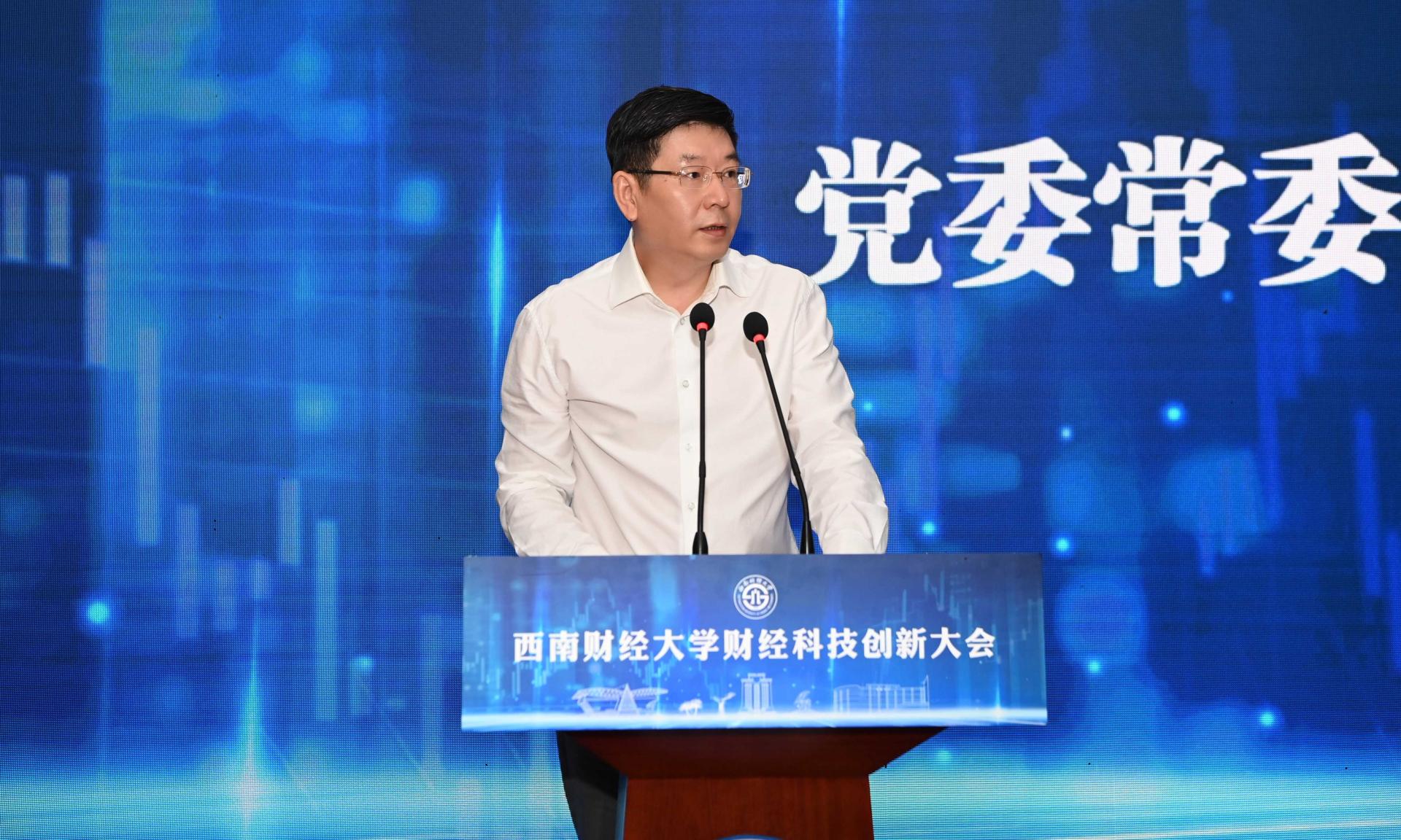 7月7日,西南財(cái)經(jīng)大學(xué)隆重召開財(cái)經(jīng)科技創(chuàng)新大會(huì),深入學(xué)習(xí)貫徹習(xí)近平總書記關(guān)于科技自立自強(qiáng)的重要論述,總結(jié)科技創(chuàng)新前期工作,舉行“數(shù)字經(jīng)濟(jì)與交叉科學(xué)創(chuàng)新研究院”財(cái)經(jīng)科技集成創(chuàng)新平臺(tái)(園區(qū))揭牌儀式,公布首批入駐團(tuán)隊(duì),部署下一步工作。學(xué)校黨委書記趙德武,黨委副書記、校長(zhǎng)卓志,黨委副書記、副校長(zhǎng)李永強(qiáng),黨委副書記、紀(jì)委書記孫殿明,黨委常委、副校長(zhǎng)尹慶雙、史代敏、張邦富、桂富強(qiáng),學(xué)校機(jī)關(guān)職能部門主要負(fù)責(zé)人,財(cái)經(jīng)科技創(chuàng)新相關(guān)學(xué)院領(lǐng)導(dǎo)班子成員、教授委員會(huì)主席和系所負(fù)責(zé)人,校學(xué)術(shù)委員會(huì)委員代表,入駐財(cái)經(jīng)科技集成創(chuàng)新平臺(tái)的創(chuàng)新團(tuán)隊(duì)負(fù)責(zé)人及成員,優(yōu)秀青年人才代表,學(xué)生代表,校友代表等近400人參加會(huì)議。李永強(qiáng)主持大會(huì)。