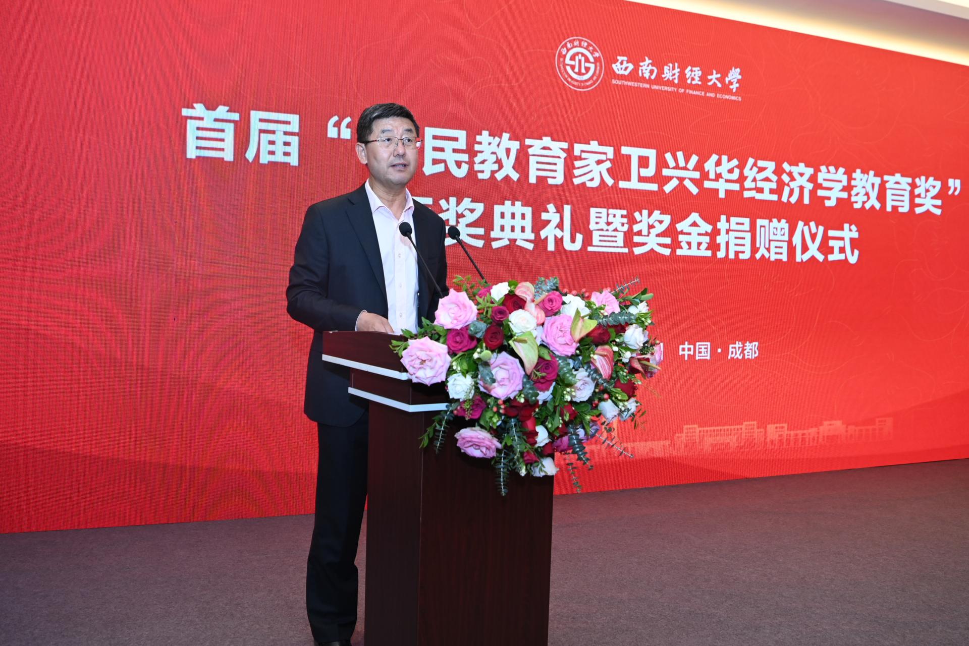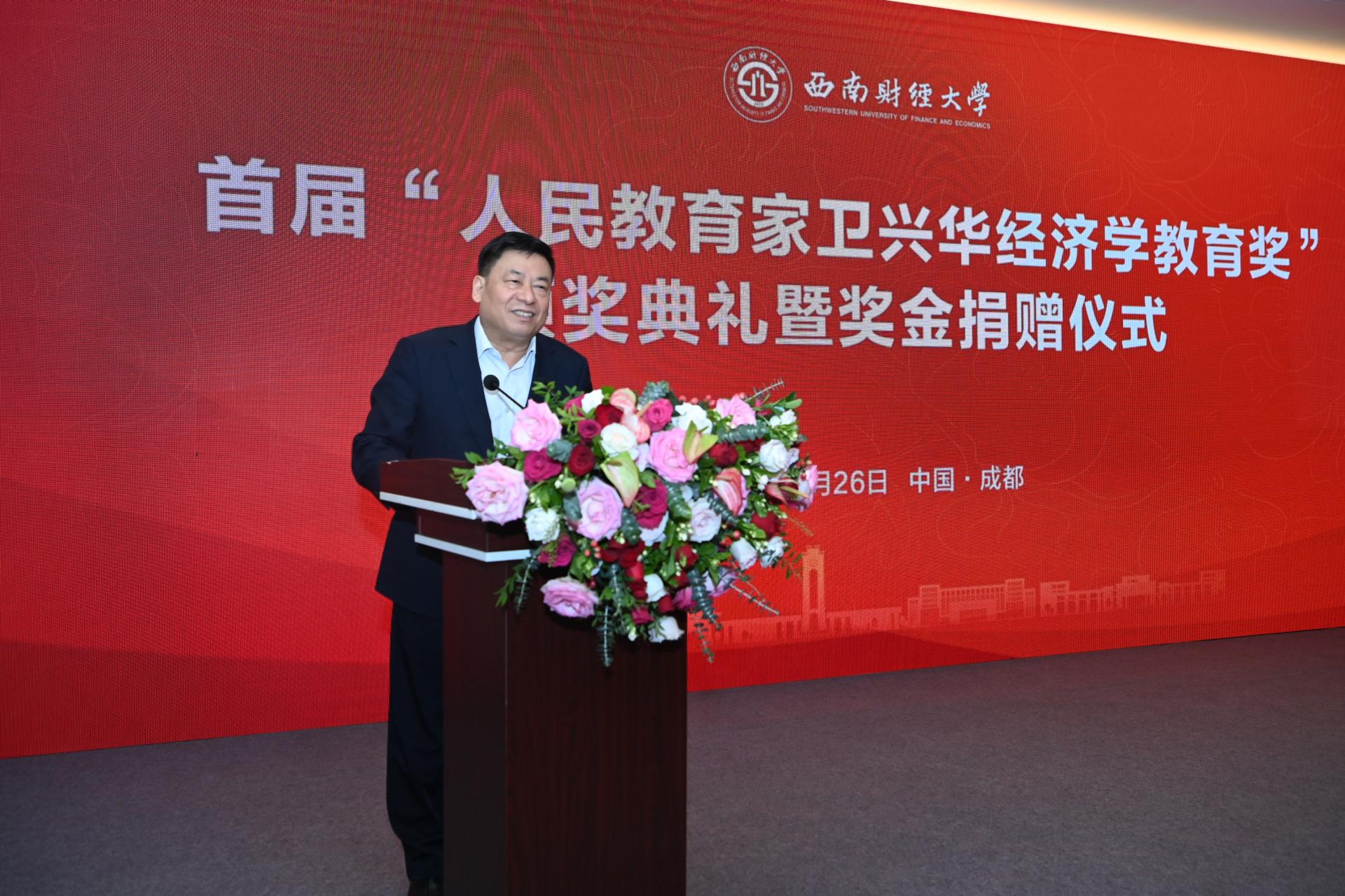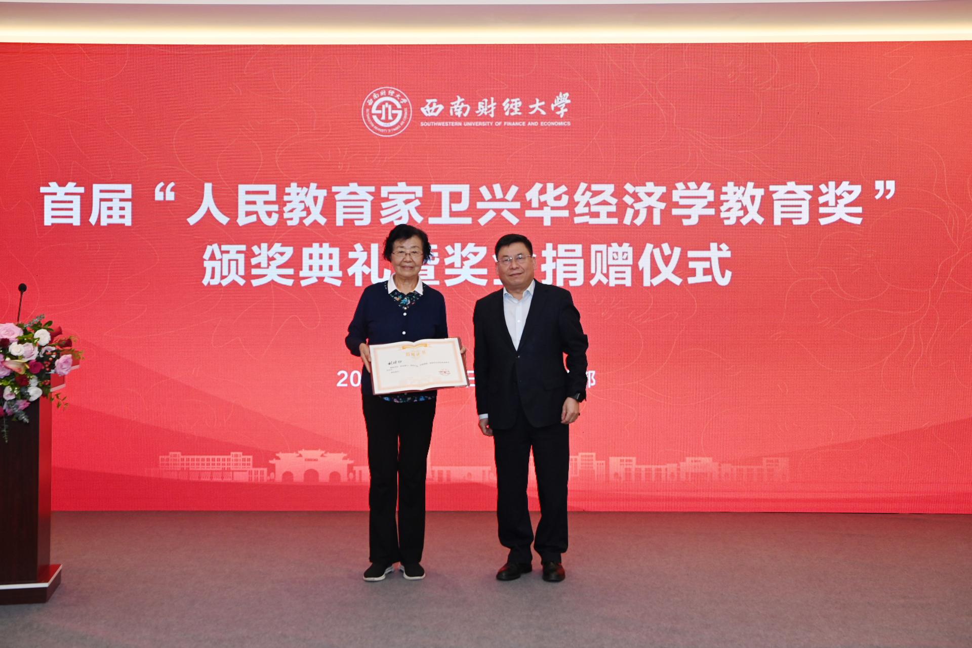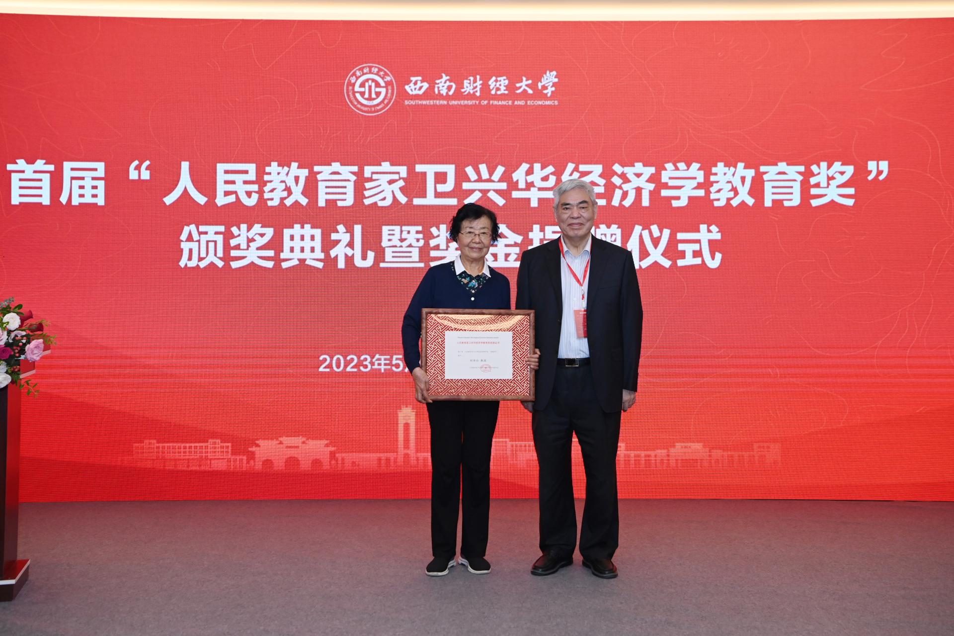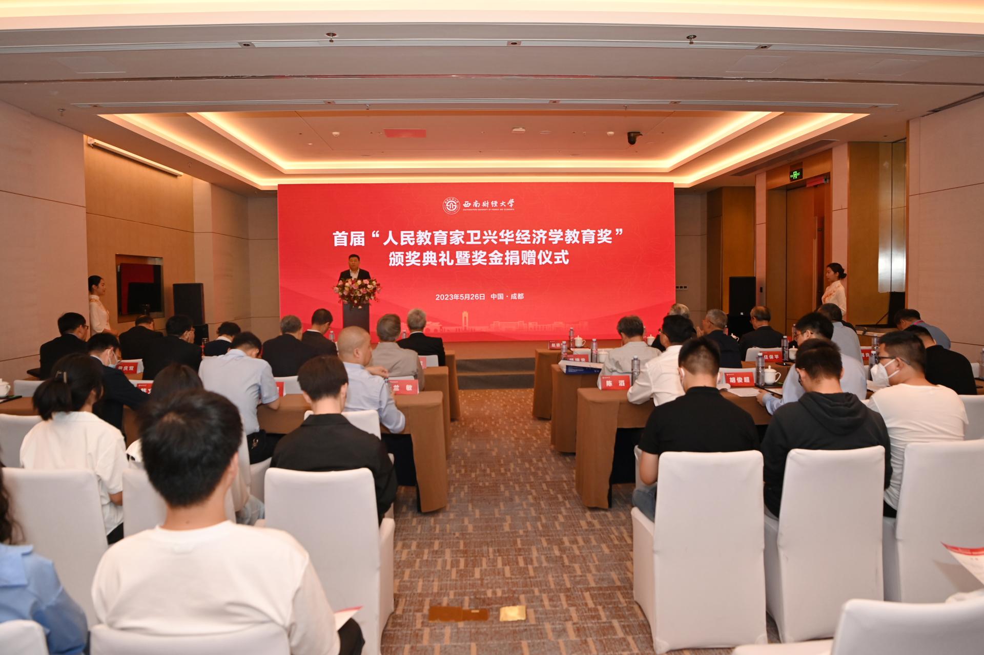 5月26日上午,首屆“人民教育家衛(wèi)興華經(jīng)濟學(xué)教育獎”頒獎典禮暨獎金捐贈儀式在成都隆重舉行。西南財經(jīng)大學(xué)劉詩白教授獲獎。“人民教育家衛(wèi)興華經(jīng)濟學(xué)教育獎”評獎委員會主任、南京大學(xué)原黨委書記洪銀興教授,評獎委員會委員、中央民族大學(xué)原校長黃泰巖教授,西南財經(jīng)大學(xué)黨委書記趙德武教授,學(xué)術(shù)委員會主任劉燦教授,黨委常委、副校長尹慶雙教授等專家學(xué)者以及學(xué)校師生代表共80余人出席頒獎典禮暨捐贈儀式。