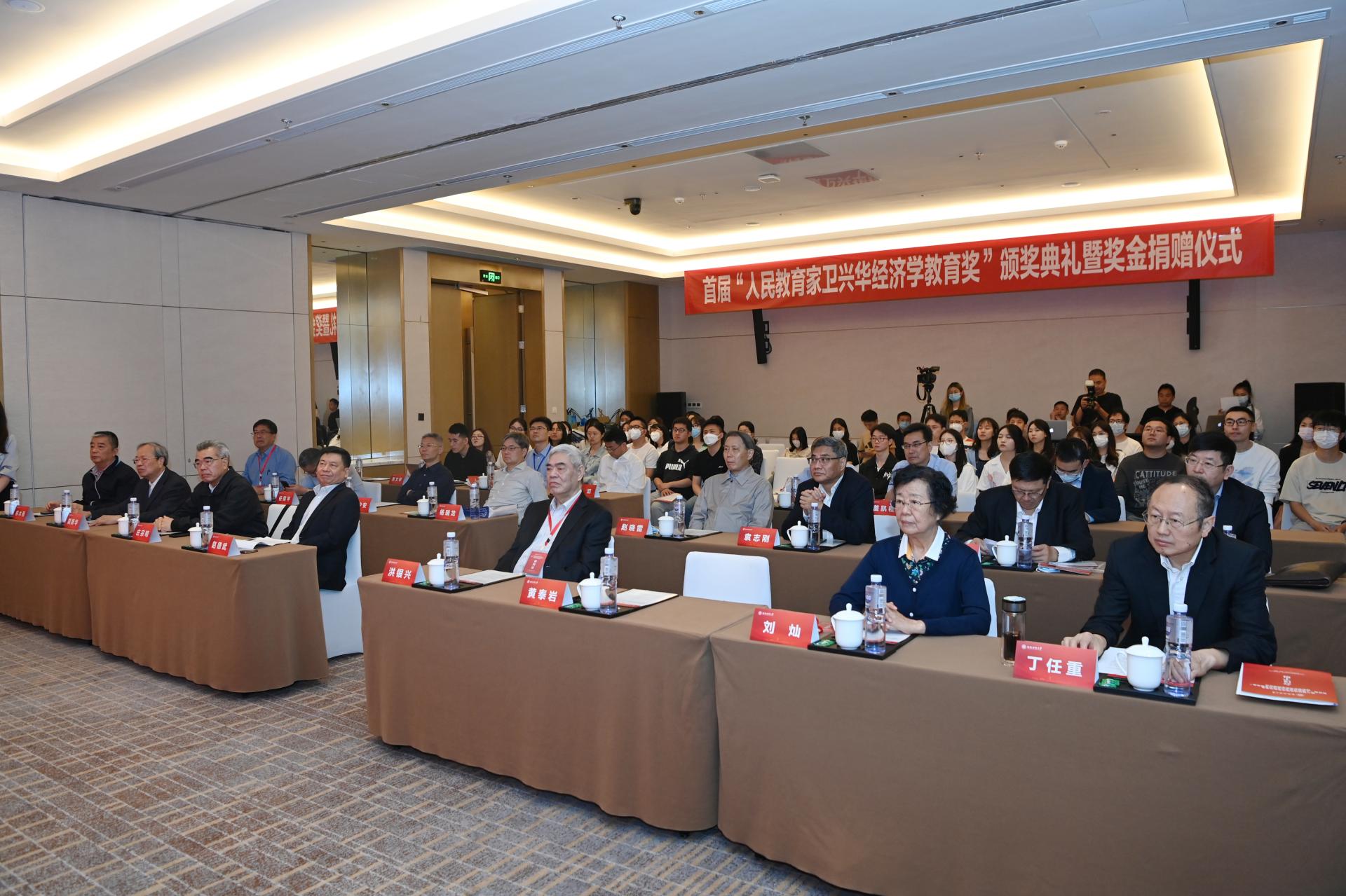 “人民教育家衛(wèi)興華經(jīng)濟學(xué)教育獎”是為紀(jì)念“人民教育家”衛(wèi)興華教授,推動中國經(jīng)濟學(xué)教育的創(chuàng)新與發(fā)展而設(shè)立的獎項,遴選并授予師德高尚,嚴(yán)謹(jǐn)篤學(xué),長期工作在教學(xué)一線,教學(xué)科研成果豐碩,在經(jīng)濟學(xué)教育領(lǐng)域做出卓越貢獻的中國公民。首屆“人民教育家衛(wèi)興華經(jīng)濟學(xué)教育獎”授予中國人民大學(xué)黃達教授和西南財經(jīng)大學(xué)劉詩白教授。