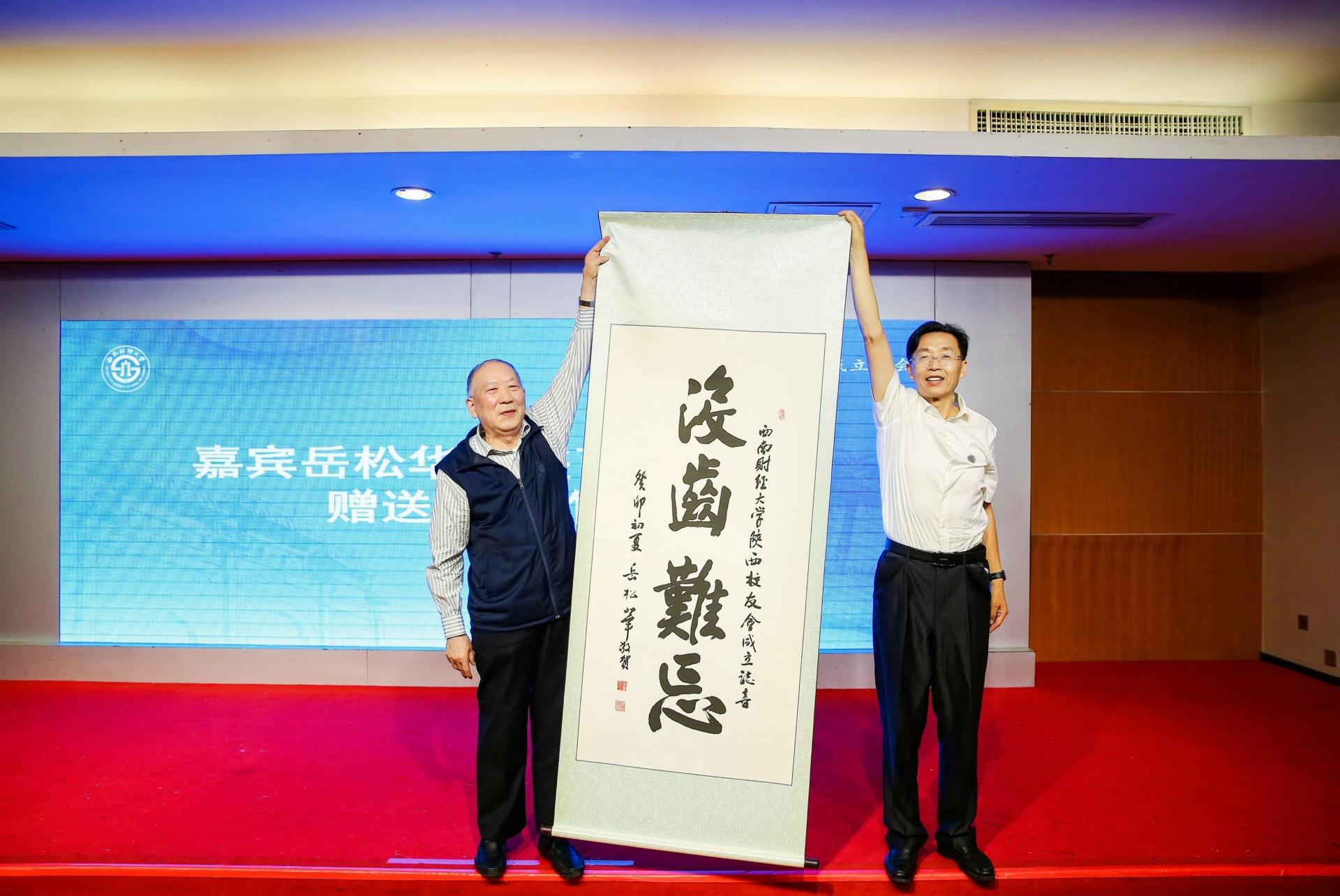 陜西校友代表秦創原發展股份有限公司產業協同創新中心總監楊英博,兄弟校友會代表西南財經大學北京校友會副會長兼秘書長、西南財經大學北京研究院院長胡斌先后發言祝賀。陜西省人大常委會原秘書長岳松華潑墨揮毫向陜西校友會贈送墨寶,并向陜西校友會和學校圖書館贈送個人著作。