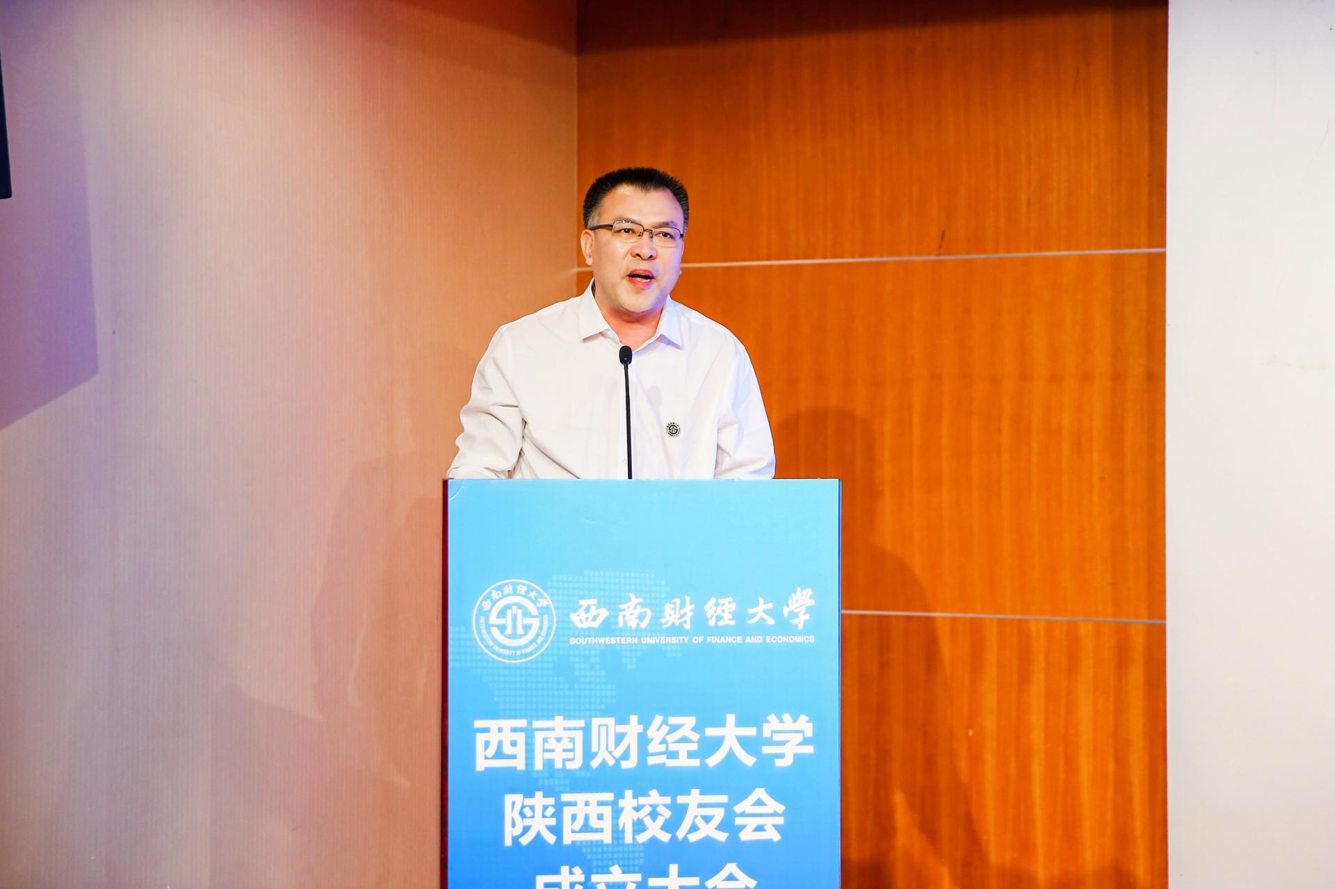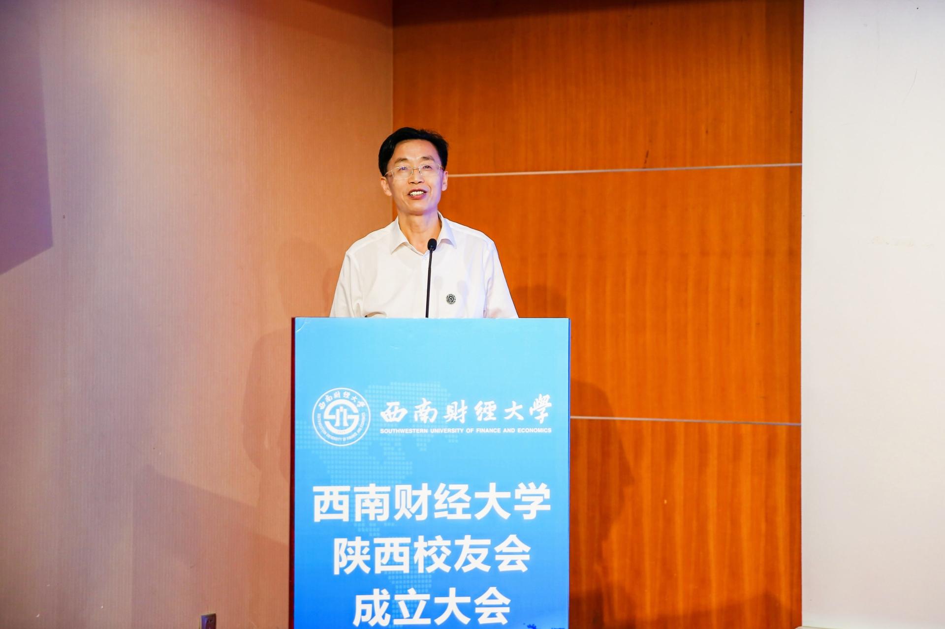 張邦富受學校黨委書記趙德武,黨委副書記、校長卓志的委托,代表全校師生向與會校友致以親切問候,并向陜西校友會的成立表示誠摯祝賀,同時向廣大校友介紹了學校改革發展情況。他指出,很高興看到西財學子始終不忘母校“嚴謹、勤儉、求實、開拓”的殷殷囑托,在三秦大地上,以卓越的成績和貢獻,不斷彰顯西財精神,擦亮西財品牌。張邦富強調,西南財經大學陜西校友會的成立,將進一步加強在陜校友之間的凝聚力,為川陜兩地的交流搭建起一架“西財橋梁”。希望校友會充分發揮紐帶作用,團結廣大校友與母校同頻共振,積極參與到母校百年校慶這件大事中來,為母校奠基百年大業凝聚起磅礴的校友力量。