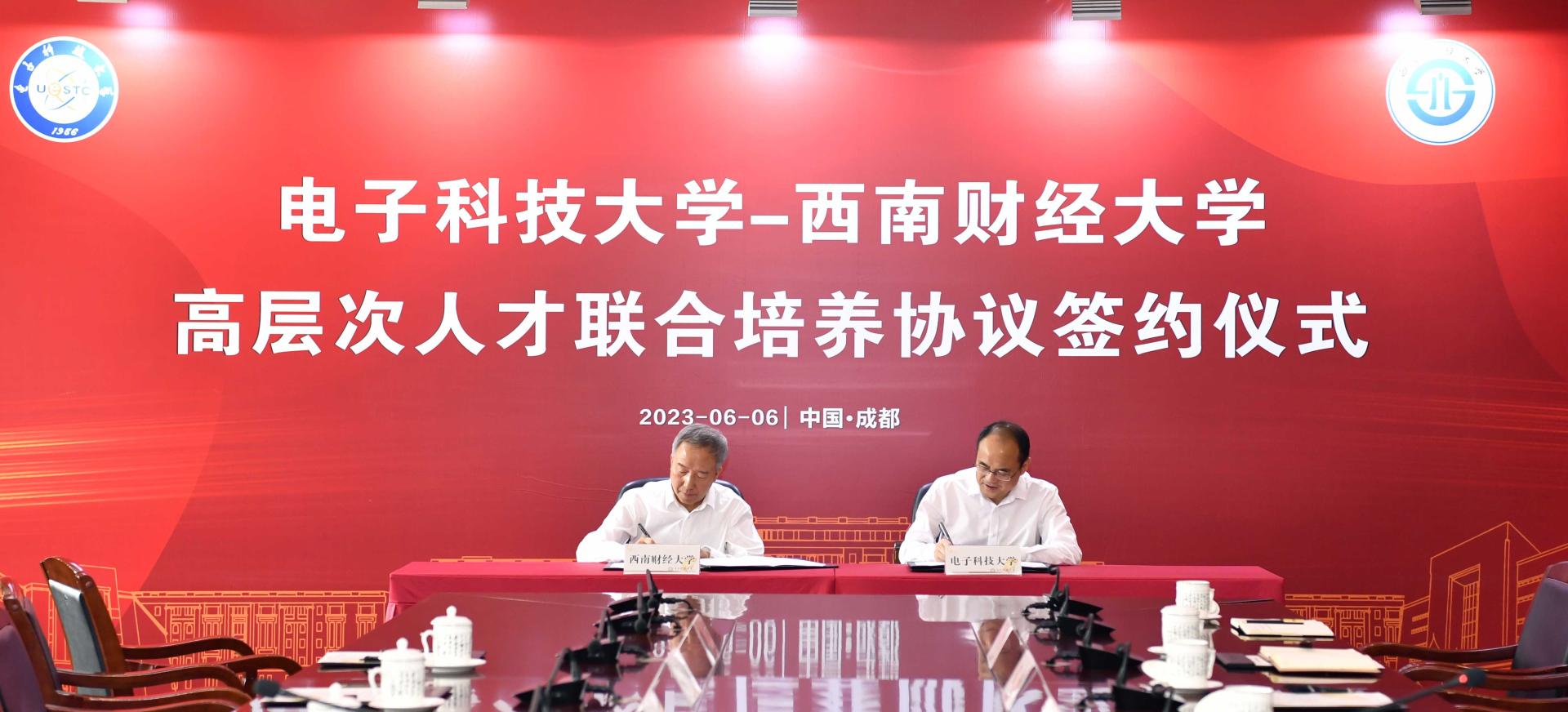 學思想、強黨性、重實踐、建新功。在全校上下深入開展學習貫徹習近平新時代中國特色社會主義思想主題教育之際,學校與電子科技大學再度攜手,探索“新財經+新工科”高層次人才培養新模式,全面推進“新財經”戰略升級,以主題教育新成效推動學校高質量發展再上新臺階。6月6日,西南財經大學-電子科技大學高層次人才聯合培養協議簽約儀式在電子科技大學清水河校區舉行,將跨學校跨學科人才聯合培養實現本碩博貫通。這是繼與電子科技大學2020年聯合建設“金融學+計算機科學與技術”聯合學士學位項目、2021年簽署戰略合作協議之后,我校與電子科技大學創新引領“新財經+新工科”深度融合,升級譜寫跨學校跨學科高層次人才聯合培養新篇章的重要舉措。