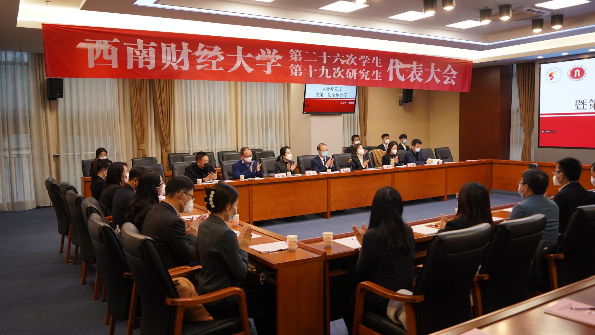 12月13日,經(jīng)學(xué)校黨委和四川省學(xué)聯(lián)批復(fù)同意,西南財(cái)經(jīng)大學(xué)第二十六次學(xué)生代表大會(huì)、第十九次研究生代表大會(huì)在柳林校區(qū)召開(kāi)。校黨委副書(shū)記、副校長(zhǎng)李永強(qiáng),學(xué)生工作部、校團(tuán)委、研究生院相關(guān)負(fù)責(zé)人以及各學(xué)院(研究院)團(tuán)組織負(fù)責(zé)人,全校137名學(xué)代會(huì)代表、100名研代會(huì)代表通過(guò)線上線下方式參加會(huì)議。