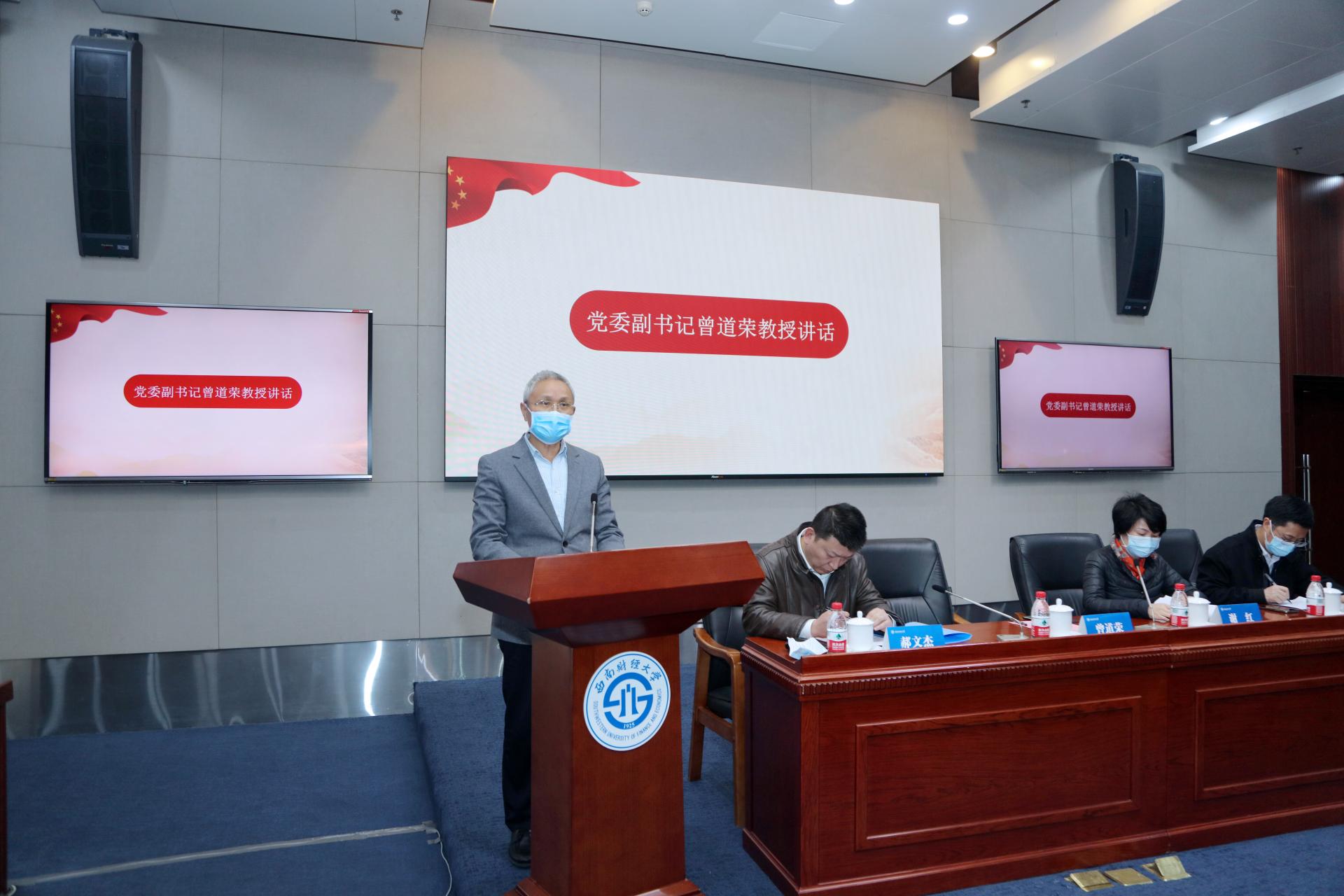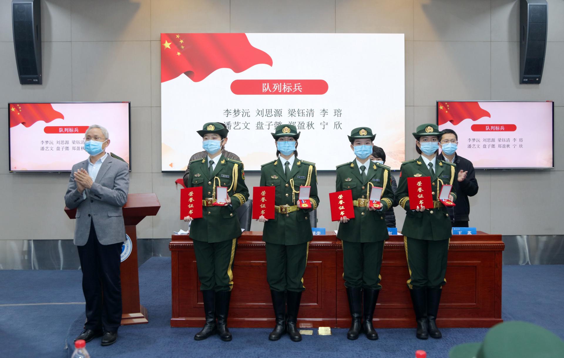 謝紅宣讀了《關(guān)于表彰西南財經(jīng)大學(xué)國旗班2020-2021學(xué)年“國旗衛(wèi)士、隊列標(biāo)兵、團(tuán)隊建設(shè)標(biāo)兵”獲得者的決定》。曾道榮向受表彰同學(xué)頒發(fā)榮譽證書和獎?wù)隆?/p>