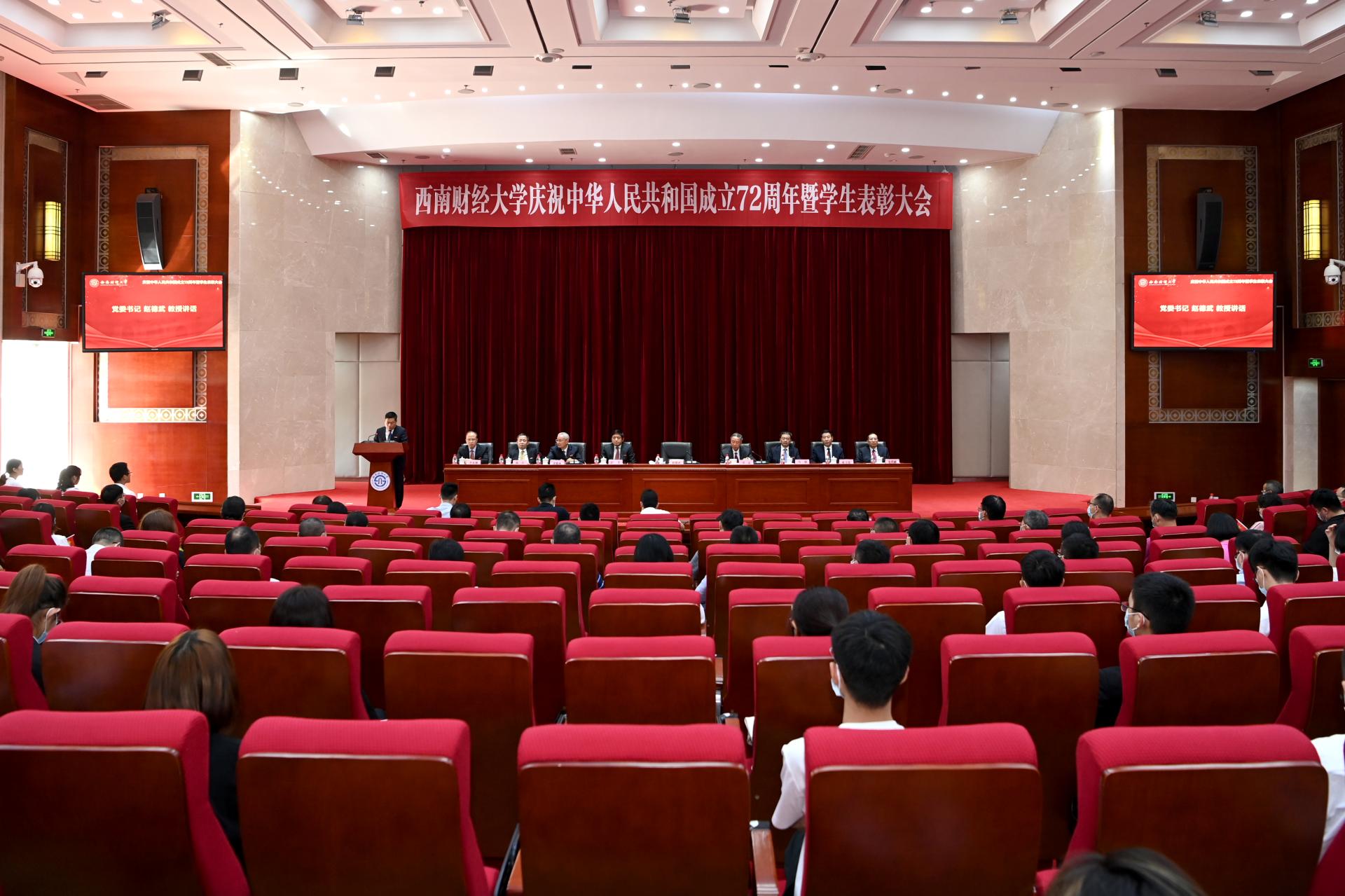 9月28日下午,學校隆重慶祝中華人民共和國成立72周年,表彰一批學生先進集體和優(yōu)秀個人。黨委書記趙德武,黨委副書記、校長卓志,黨委常委、常務副校長彭龍,黨委副書記馬驍、曾道榮,黨委副書記、紀委書記范衛(wèi)宏,黨委常委、副校長歐兵、史代敏、李永強,各職能部門和學院(中心)負責人及學生代表參加大會。卓志主持會議。