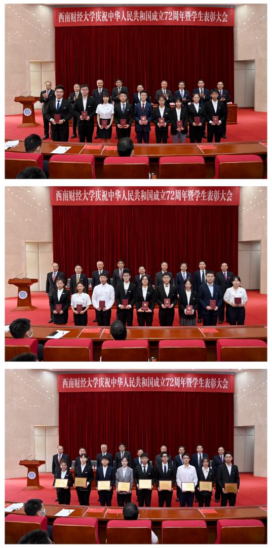 會上,曾道榮宣讀了《關于表彰西南財經大學2020-2021學年“三好學生、優(yōu)秀學生干部、先進班集體”獲得者的決定》。校領導為受表彰集體和個人代表頒發(fā)榮譽證書。會場播放短片,回顧了獲獎代表在逐夢路上以情懷、以責任彰顯西財精神的奮斗歷程與先進事跡。