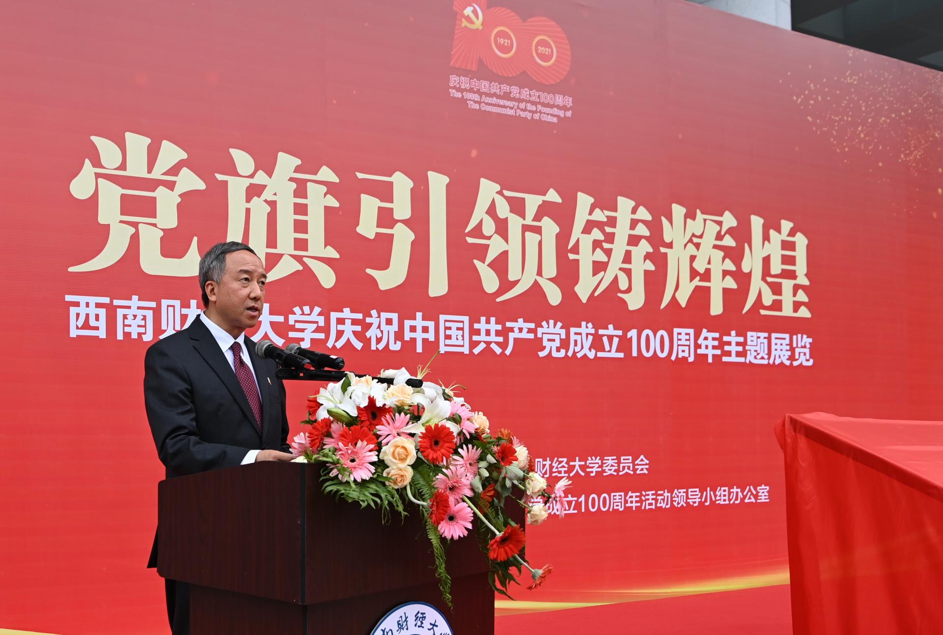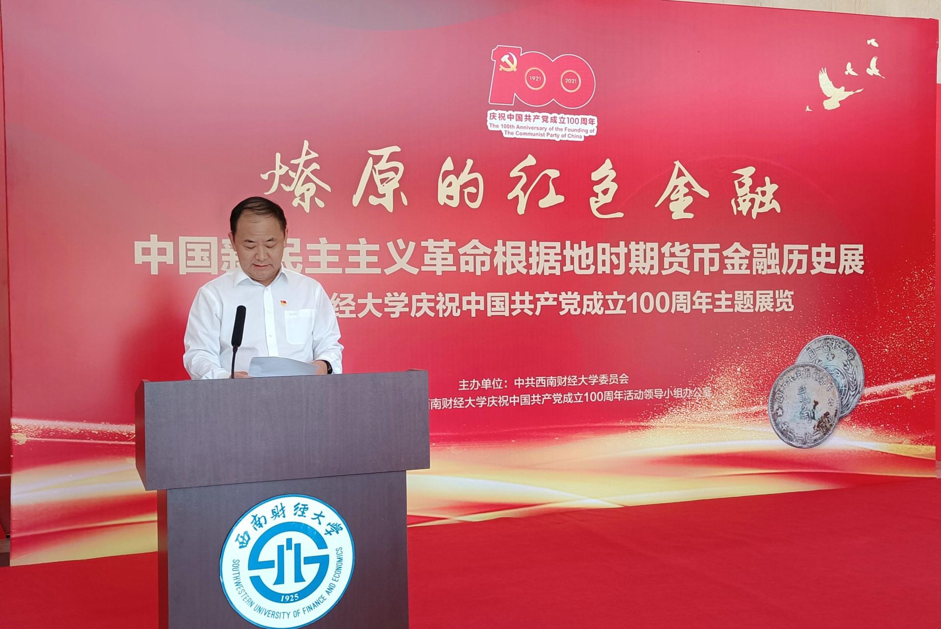 在中國共產黨成立100周年之際,西南財經大學隆重推出系列主題展,為黨的百歲生日獻上西財人感黨恩、跟黨走的充滿熾熱情懷的禮物。系列展覽由學校黨委主辦,學校慶祝中國共產黨成立100周年活動領導小組辦公室承辦,“黨旗引領鑄輝煌—慶祝中國共產黨成立100周年”主題展、“百年大黨 風華正茂”書畫展、“燎原的紅色金融”貨幣歷史展、“百年征程 壯麗錦繡”攝影展四個展覽分別由檔案館、校團委和離退休工作處、圖書館、校工會具體籌備。