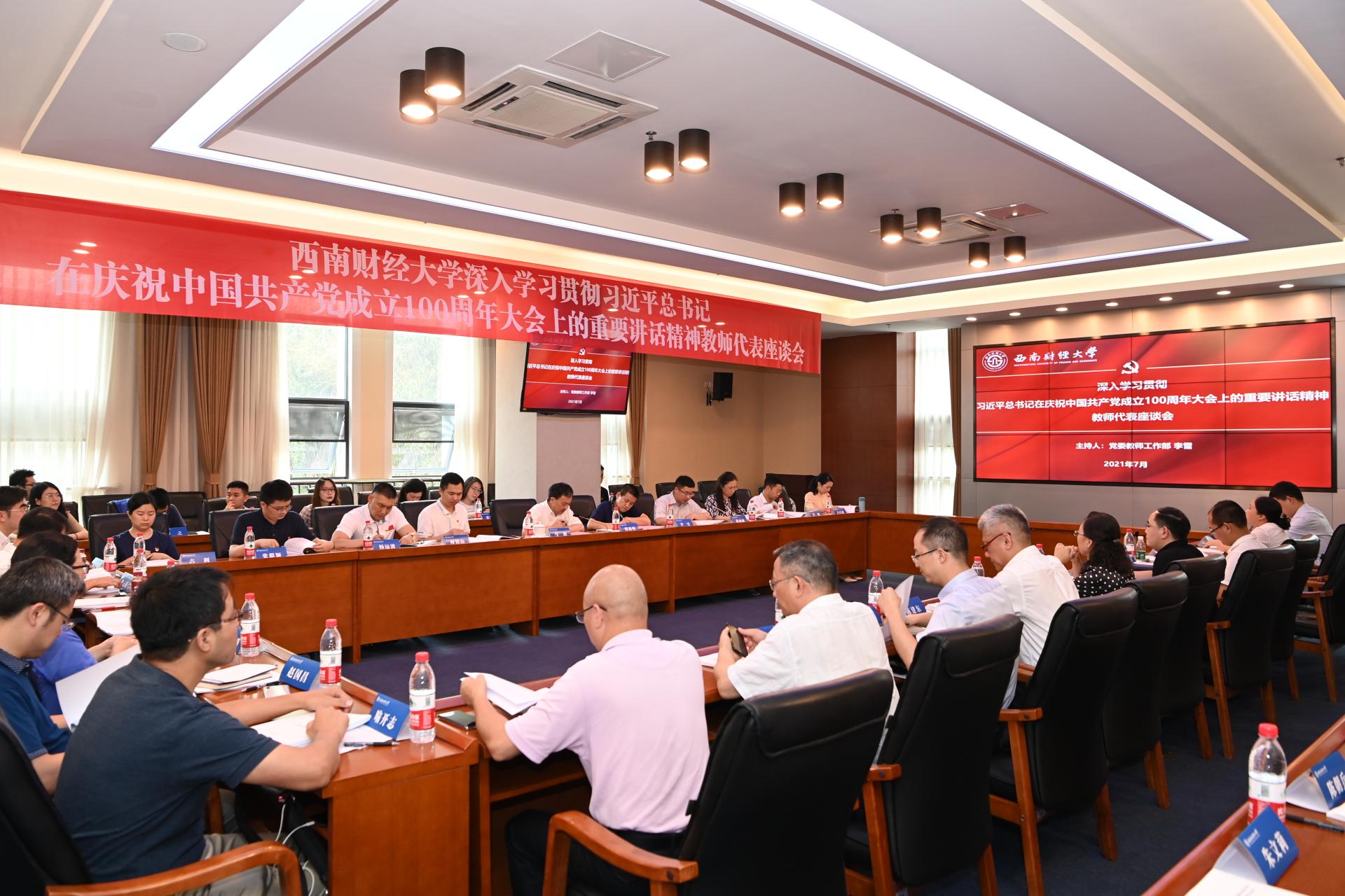 座談會上,經濟學院李萍教授、公共管理學院陳建東教授、馬克思主義學院劉世強教授、金融學院羅榮華教授、國際商學院吳鋼副教授等13位教師作了交流發言,圍繞習近平總書記“七一”重要講話的重大意義、豐富內涵、核心要義和實踐要求,并結合學術傳承、科技創新、青年人才培養、做新時代“大先生”等談理論學習體會,講立德樹人初心。大家一致認為,習近平總書記“七一”重要講話系統回顧了中國共產黨團結帶領全國各族人民開辟的偉大道路、創造的偉大事業、取得的偉大成就;莊嚴宣告實現了第一個百年奮斗目標、全面建成了小康社會,鄭重宣示堅持和發展新時代中國特色社會主義、向全面建成社會主義現代化強國的第二個百年奮斗目標邁進的堅定決心,深刻闡述以史為鑒、開創未來的根本要求,向全體黨員發出了為黨和人民爭取更大光榮的偉大號召,是一篇馬克思主義綱領性文獻。大家一致表示,習近平總書記“七一”重要講話是新時代中國共產黨人不忘初心、牢記使命的政治宣言,是我們黨團結帶領人民以史為鑒、開創未來的行動指南。作為高校教師,要始終立足“兩個大局”,胸懷“國之大者”,認真貫徹黨的教育方針,永葆立德樹人初心和為黨育人、為國育才使命,培養德智體美勞全面發展的社會主義建設者和接班人,為實現中華民族的偉大復興作出新的更大貢獻。