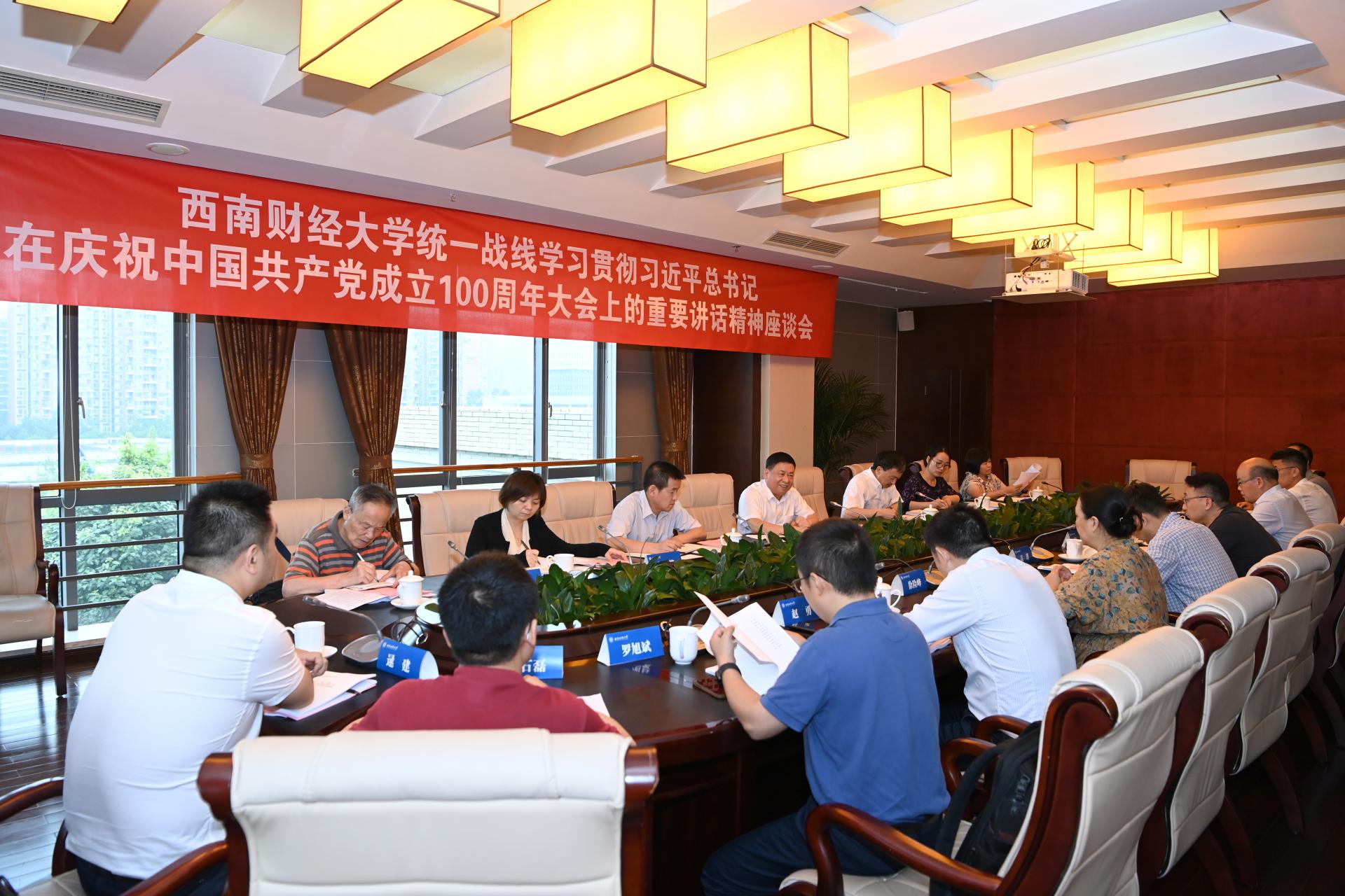 座談會上,學校民革支部主委高琪、民盟委員會副主委徐險峰、民建支部主委廖毅、民進支部主委趙勇、農(nóng)工黨支部主委毛中根、致公黨支部主委羅旭斌、九三支社主委翁智剛,無黨派人士代表楊石磊、羅榮華,學校臺聯(lián)主席劉華富、僑聯(lián)主席周高蓉、知聯(lián)會副會長逯建、留聯(lián)會會長董艷作交流發(fā)言,結(jié)合所在黨派歷史、統(tǒng)戰(zhàn)團體歷史回顧了與中國共產(chǎn)黨團結(jié)合作的百年奮斗史,圍繞思想政治建設、組織建設、履職能力建設、作用發(fā)揮等談學習體會。大家一致認為,習近平總書記“七一”重要講話貫通歷史、現(xiàn)實、未來,貫通偉大斗爭、偉大工程、偉大事業(yè)、偉大夢想,高屋建瓴、思想深邃、內(nèi)涵豐富、催人奮進,是一篇閃耀著馬克思主義光輝的綱領性文獻,是中國共產(chǎn)黨團結(jié)帶領人民以史為鑒、開創(chuàng)未來的行動指南。大家一致表示,百年黨史生動證明中國共產(chǎn)黨是偉大光榮正確的黨,由衷欽佩、自愿接受中國共產(chǎn)黨領導,將始終高舉愛國主義和社會主義旗幟,著眼“兩個大局”,胸懷“國之大者”,永葆立德樹人初心,努力擔當為黨育人、為國育才使命,充分發(fā)揮自身優(yōu)勢,立足本職工作雙崗建功。
