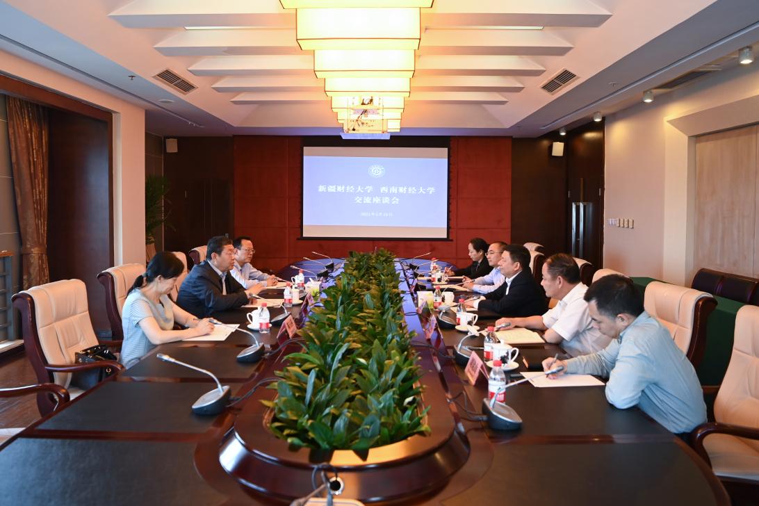 5月19日下午,新疆財經大學黨委書記李建軍一行到訪我校。學校黨委書記趙德武,黨委常委、副校長張邦富在柳林校區會見李建軍一行并座談,教務處、研究生院和工商管理學院負責人陪同座談。