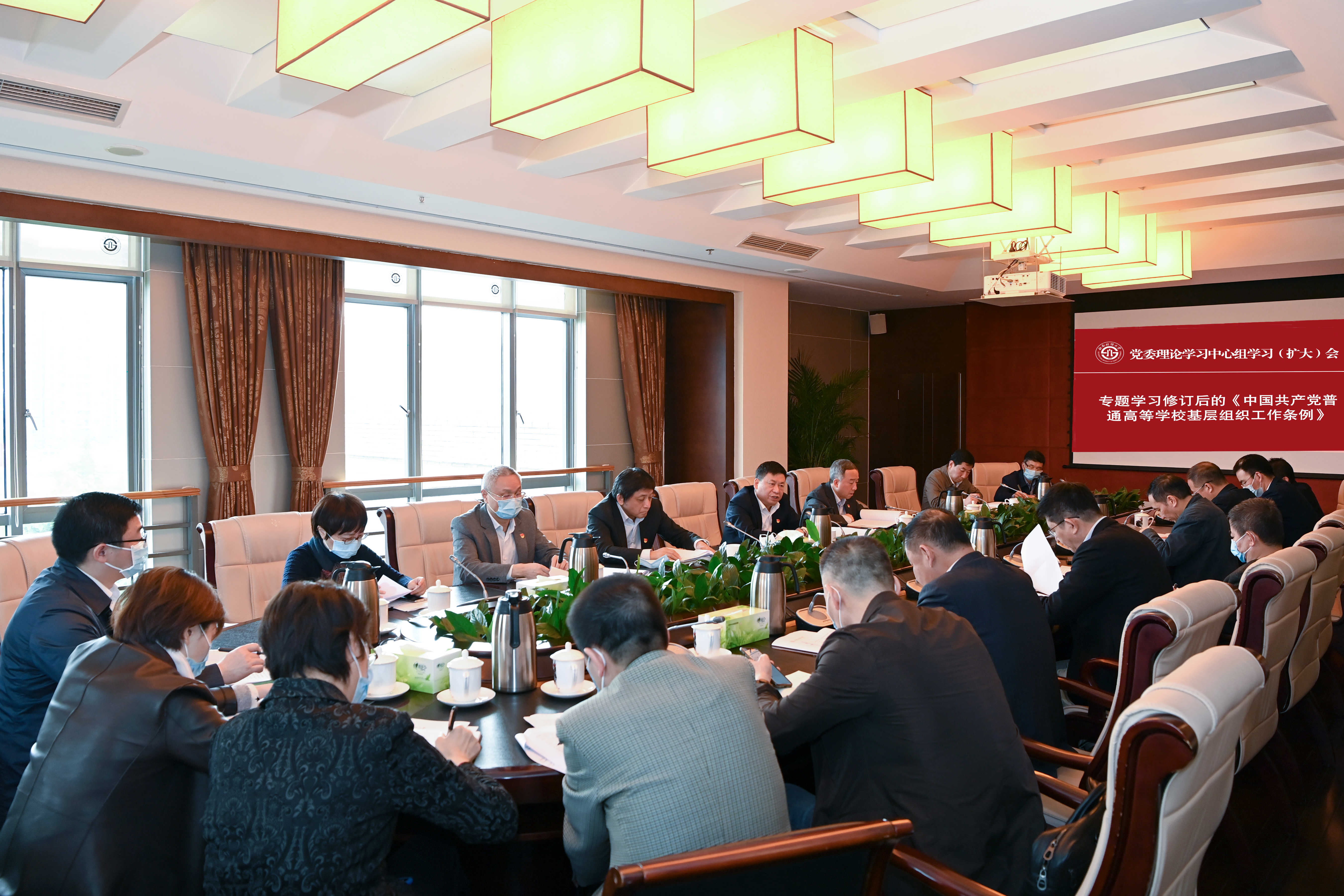 會(huì)議指出,新修訂的《中國(guó)共產(chǎn)黨普通高等學(xué)校基層組織工作條例》,深入貫徹習(xí)近平新時(shí)代中國(guó)特色社會(huì)主義思想和黨的十九大、十九屆二中、三中、四中、五中全會(huì)精神,貫徹落實(shí)新時(shí)代黨的建設(shè)總要求和新時(shí)代黨的組織路線,對(duì)高校基層黨組織工作作出全面規(guī)范,是高校黨的建設(shè)實(shí)踐探索和制度建設(shè)的重要成果,是新時(shí)代高校黨的建設(shè)的基本遵循。《條例》修訂完善了指導(dǎo)思想和目標(biāo)原則,提出了高校黨組織工作應(yīng)當(dāng)遵循5個(gè)方面原則,事關(guān)高校黨建工作全局。在建黨百年的重大時(shí)刻修訂頒布這項(xiàng)重要黨內(nèi)法規(guī),對(duì)于學(xué)校全面貫徹黨的教育方針,落實(shí)立德樹人根本任務(wù),建設(shè)高質(zhì)量教育體系,培養(yǎng)社會(huì)主義建設(shè)者和接班人,意義重大、影響深遠(yuǎn)。