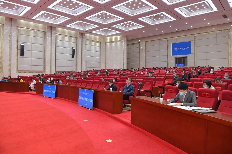 3月23日,學(xué)校在柳林校區(qū)召開2021年黨建與思想政治工作會(huì)議。學(xué)校黨委書記趙德武,校長(zhǎng)、黨委副書記卓志,黨委常委、常務(wù)副校長(zhǎng)彭龍,黨委副書記馬驍、曾道榮,黨委副書記、紀(jì)委書記范衛(wèi)宏,黨委常委、副校長(zhǎng)歐兵、尹慶雙、史代敏、張邦富、李永強(qiáng)出席會(huì)議。黨委委員、紀(jì)委委員,特聘組織員,二級(jí)黨組織書記、副書記,各學(xué)院(中心)院長(zhǎng)(主任),職能教輔部門主要負(fù)責(zé)人,教工及學(xué)生黨支部書記代表、專業(yè)課教師代表、輔導(dǎo)員代表參加會(huì)議。趙德武講話。卓志主持會(huì)議。