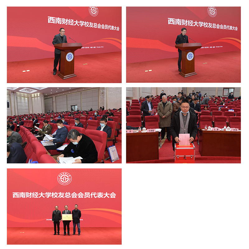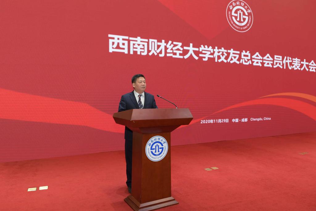 11月29日,西南財經大學校友總會會員代表大會暨2020年校友論壇在柳林校區舉行。四川省委教育工委書記、省教育廳黨組書記、廳長李江,省委教育工委委員、省教育廳黨組成員、副廳長戴作安,省民政廳二級巡視員、省社會組織管理局局長冉敬軍,黨委書記趙德武,校長、黨委副書記卓志,黨委常委、常務副校長彭龍,黨委副書記馬驍、曾道榮,黨委副書記、紀委書記范衛宏,黨委常委、副校長歐兵、尹慶雙、史代敏、張邦富、李永強,學校老領導代表,各地校友會會長、秘書長代表,校友代表,省教育廳、民政廳有關部門負責人,學校相關職能部門和學院(中心)負責人參加大會。張邦富主持校友總會會員代表大會。