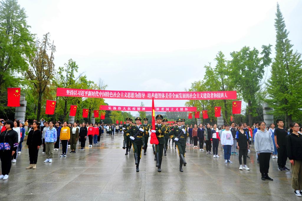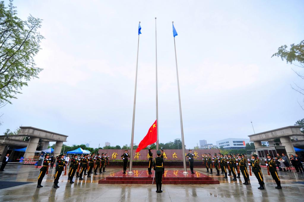 8時30分,升國旗儀式正式開始。國旗班成員步伐鏗鏘姿態昂揚,護送著國旗緩緩入場。在雄壯激昂的國歌聲中,升旗手迎風振臂,師生們莊嚴肅立,滿懷深情凝神注視著鮮艷的五星紅旗伴隨著國歌聲冉冉升起、迎風飄揚。這一刻,在場師生的愛國心、民族情、自豪感被點燃,化作祈愿偉大祖國更加繁榮昌盛的滿腔赤誠。