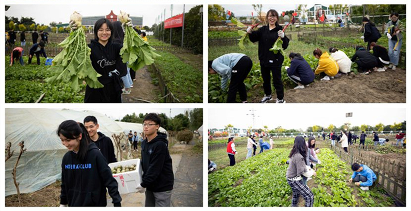 活動(dòng)中,師生們認(rèn)真向農(nóng)民師傅學(xué)習(xí)種植知識(shí)和勞動(dòng)技巧,干勁十足地動(dòng)手實(shí)踐,翻土、播種、除草,采摘花生、蘿卜和番薯等農(nóng)作物……大家分工協(xié)作,井然有序,現(xiàn)場(chǎng)一派熱火朝天的勞動(dòng)景象。最終,同學(xué)們完成了十余畝土地上的勞作任務(wù),并運(yùn)用在學(xué)校“烹飪教室”習(xí)得的烹飪技巧,做了一餐“自給自足”的農(nóng)家飯。