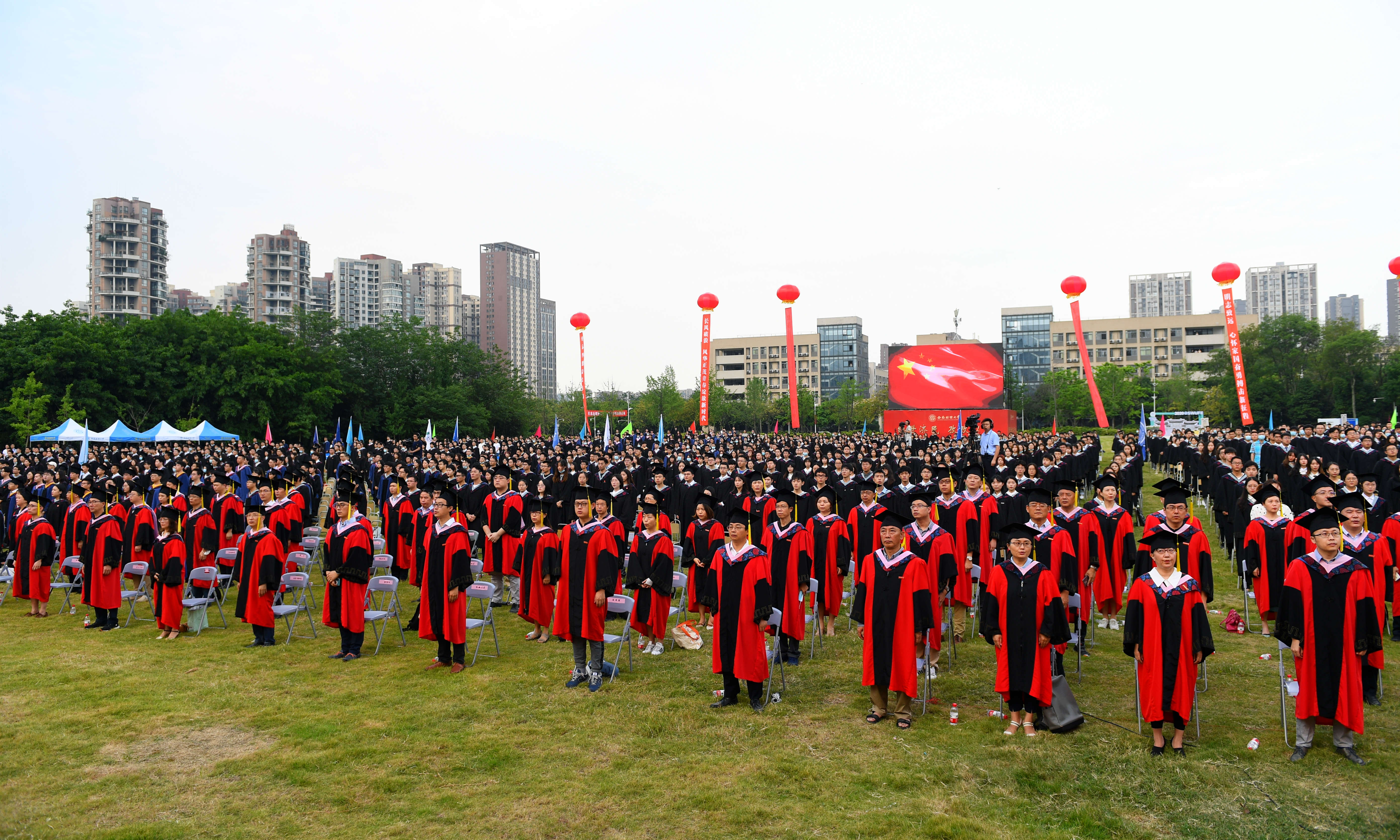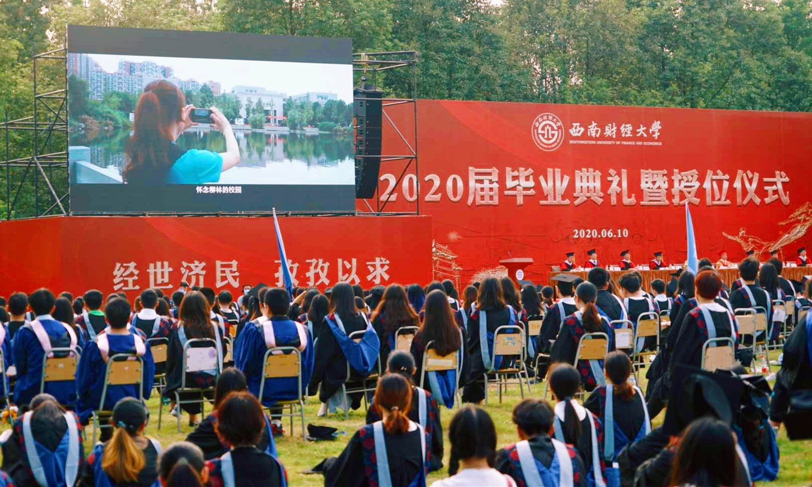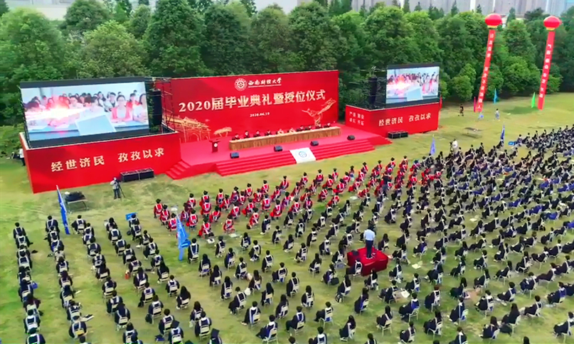 鳳凰花開(kāi),驪歌響起,典禮在全場(chǎng)高唱《西南財(cái)經(jīng)大學(xué)校歌》中落下帷幕。