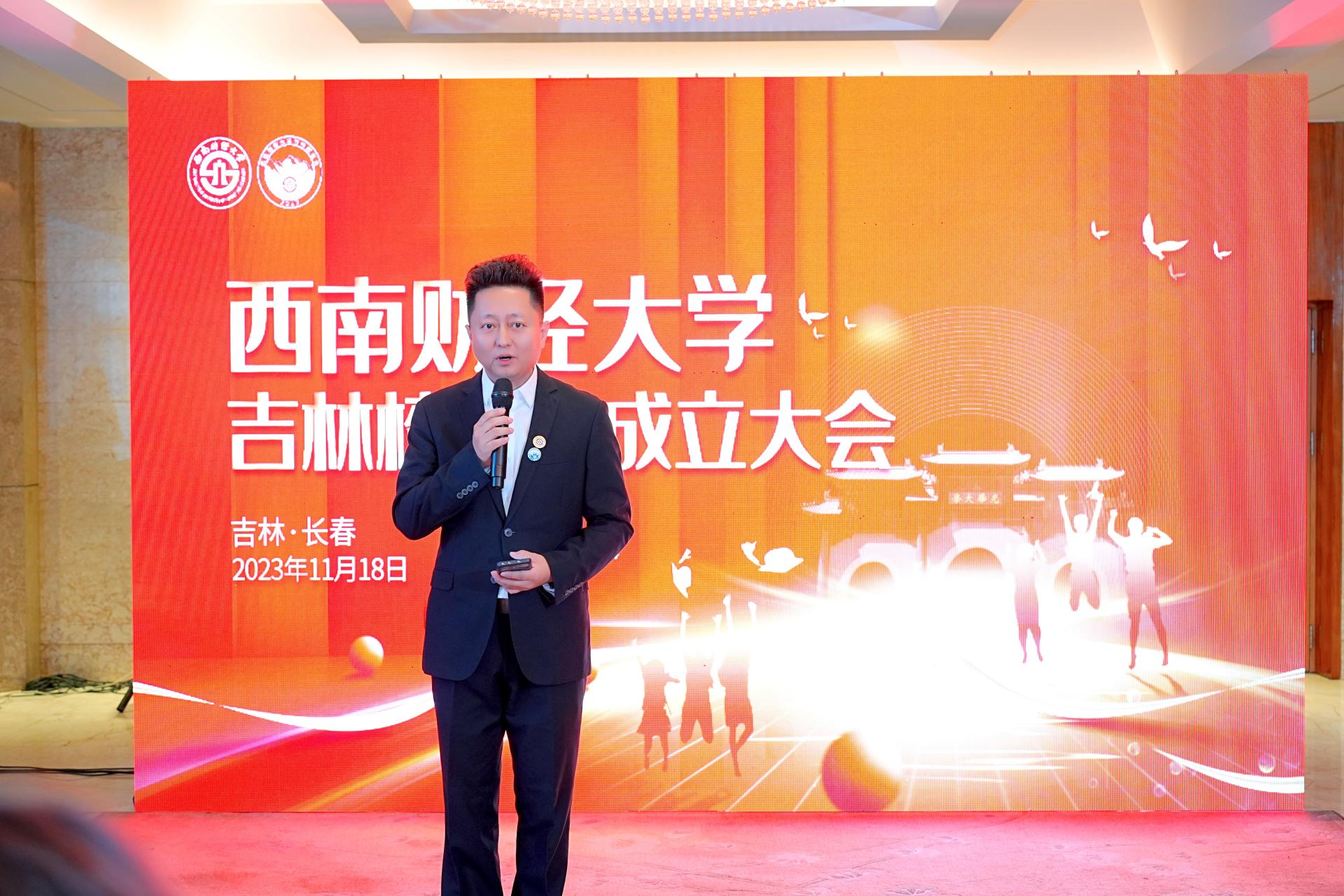 張邦富受學校黨委書記趙德武,黨委副書記、校長李永強的委托,代表全校師生向與會校友致以親切問候,向吉林校友會的成立表示熱烈祝賀。他對扎根吉林、服務吉林,為推動吉林全面振興全方位振興不懈貢獻西財力量的廣大校友給予了高度評價,希望廣大校友始終秉承“經世濟民、孜孜以求”的西財精神,以昂揚斗志、務實作風取得新的成績、做出新的貢獻。張邦富向廣大校友介紹了學校近年來改革發展情況和“雙一流”建設取得的重要成果,并對吉林校友會充分發揮紐帶作用,團結廣大在吉校友積極參與學校“新財經”戰略升級、百年校慶籌備、建設財經特色鮮明的世界一流大學的各項重要工作表示了高度期許。