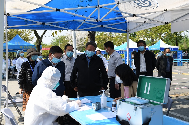 演練過程中,校領導認真觀摩每個演練場景,結合演練情況提出指導要求。