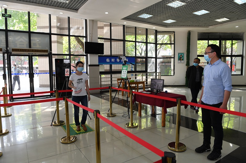 在演練現場,隨處可見清晰明顯的提示展板和耐心解答的工作人員,參加演練的人員根據引導有序排隊、積極配合。柳林校區南大門外,演練人員根據展板提示主動出示健康二維碼,配合工作人員完成行程查驗、行李消毒和口罩更換,間隔排隊進入熱成像體溫篩查區測量體溫,如實進行流行病學調查登記,領取學校精心準備的防疫物資“愛心包”并進入校園。梅園學生公寓門口,熱情的樓媽們站成一排迎接久別重逢的同學,學生們依次間隔排隊進行身份驗證、健康卡復核和體溫檢測。在經世樓教室,同學們嚴格遵守單向通行和隔位就坐,認真學習返校開學第一課。在五谷堂,同學們按照“七步洗手法”完成餐前清潔,在“回”字形通道間隔排隊錯峰購餐。超市門口,前來購物的同學間隔排隊、主動消毒,工作人員及時有效控制進入超市內人數,引導學生有序購物。