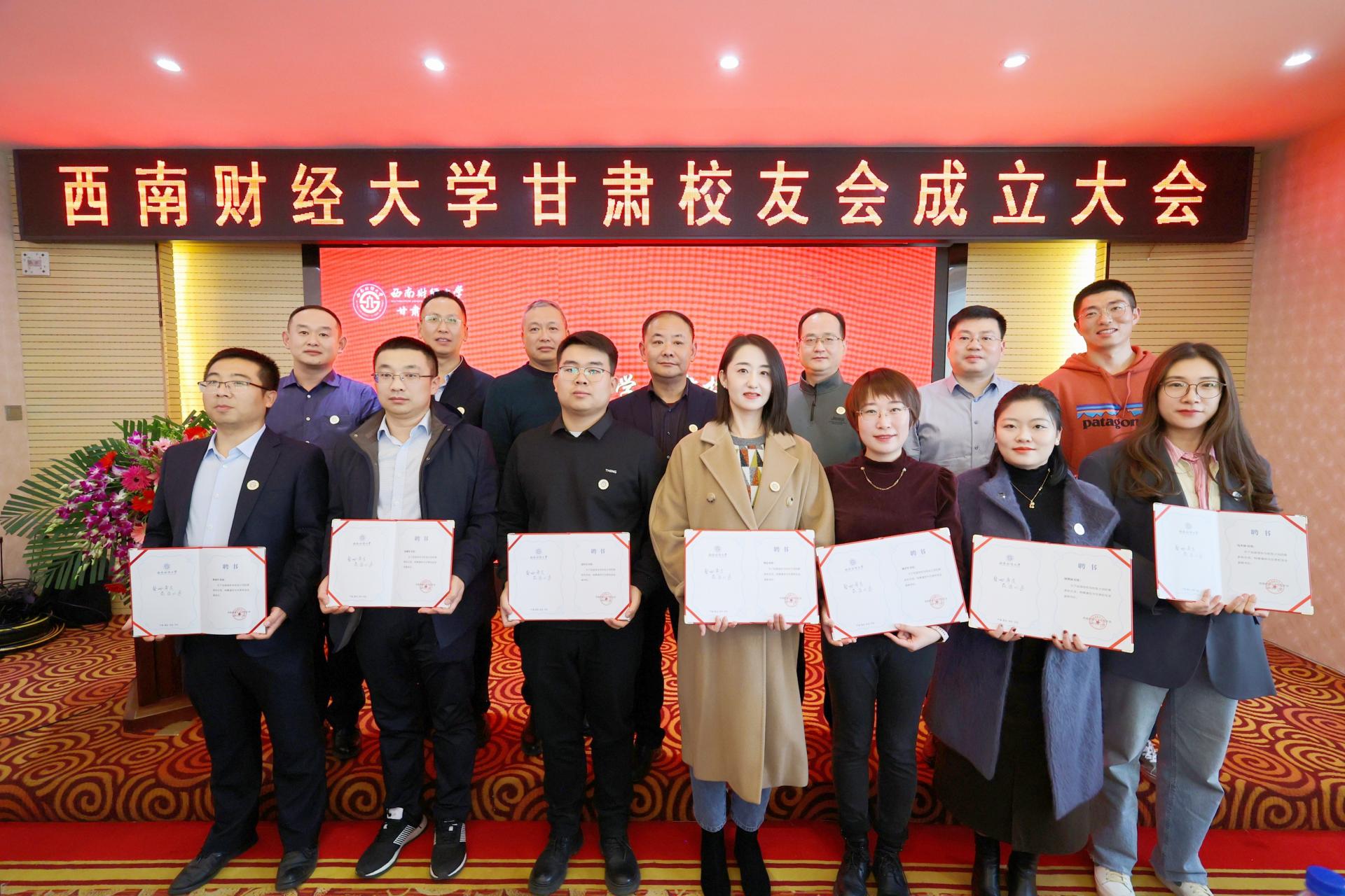 會上宣讀了甘肅校友會成立批復,舉行了揭牌(授旗)儀式,并為甘肅校友會第一屆理事會成員頒發聘書。