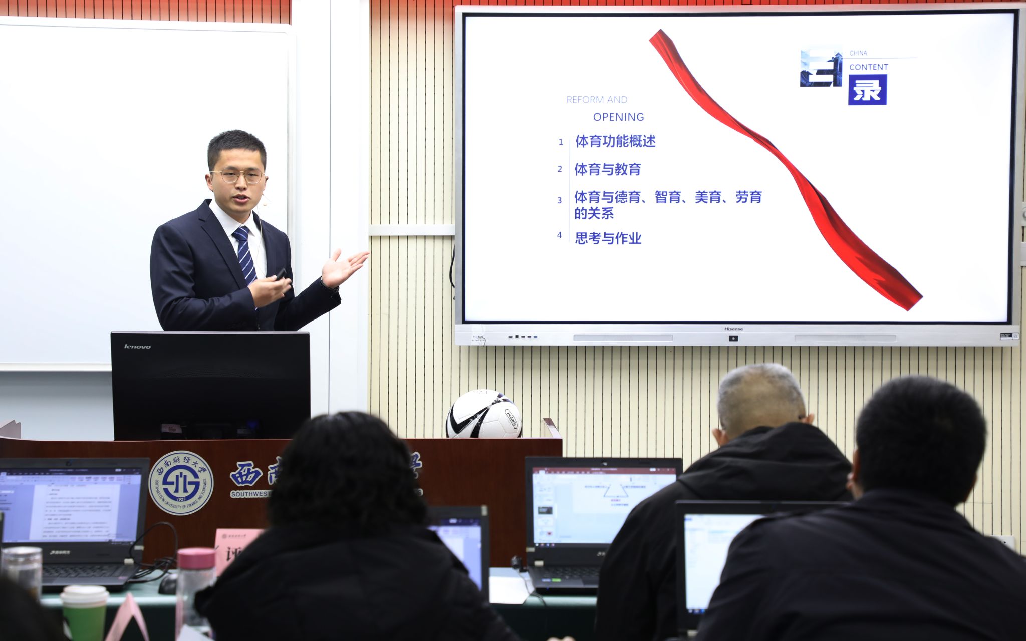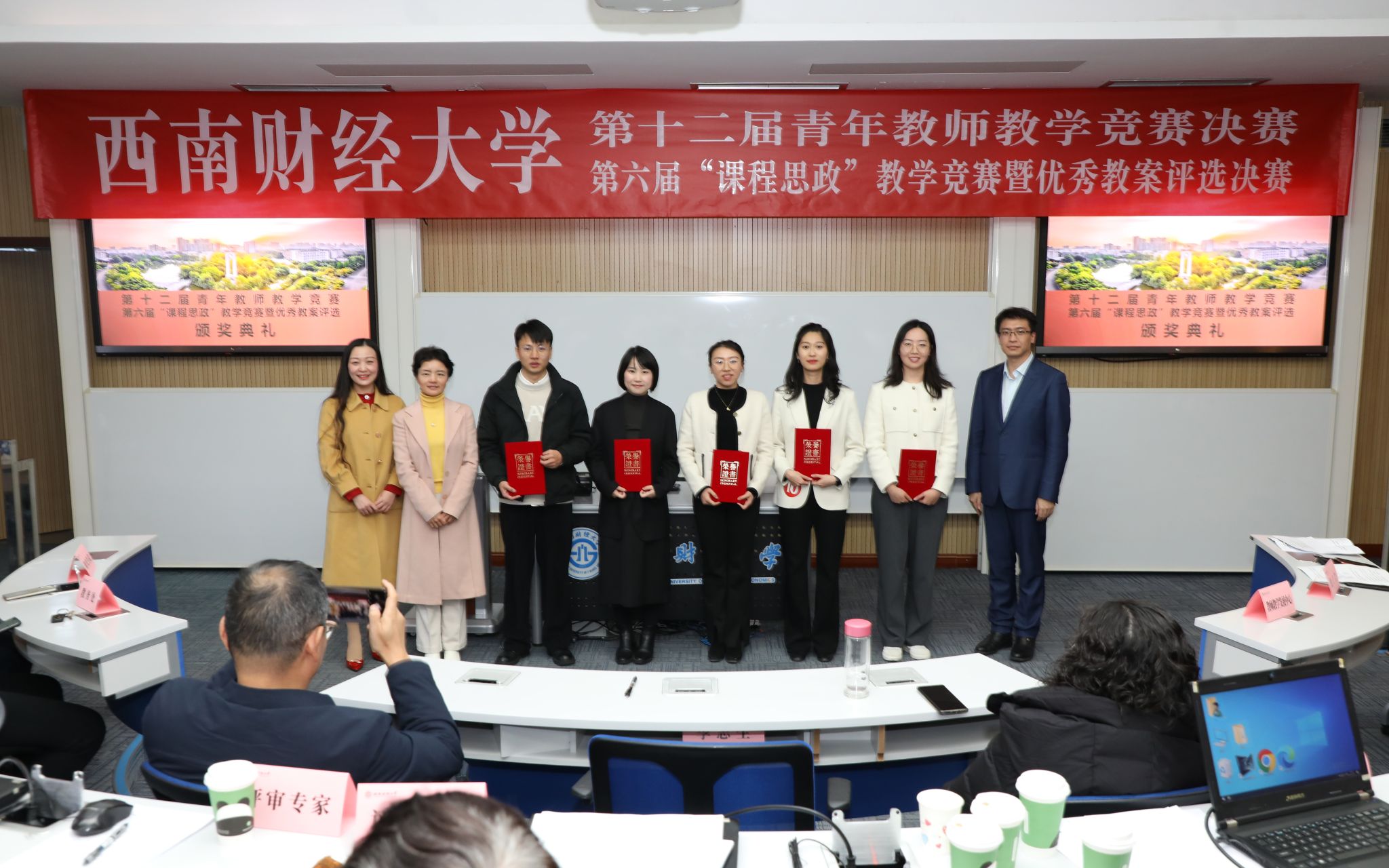 在決賽精彩激烈的氛圍中,金融學(xué)院、中國金融研究院陳汕老師結(jié)合現(xiàn)實(shí)投資場景生動解析了投資組合管理的建模邏輯與實(shí)務(wù)應(yīng)用,馬克思主義學(xué)院袁上老師從歷史細(xì)節(jié)入手深入地闡明了近代中國反侵略戰(zhàn)爭失敗的軍事原因,兩位老師榮獲第十二屆青年教師教學(xué)競賽一等獎(jiǎng)。體育學(xué)院簡家俊老師從五育融合的角度精辟地分析了近年來熱議的青少年身心健康的重要價(jià)值,數(shù)學(xué)學(xué)院方敏老師用手工制作的道具精彩地闡釋了割圓術(shù)的原理,國際商學(xué)院蒲岳老師基于政策評估前沿方法深刻地剖析了共建“一帶一路”十年來取得的建設(shè)成效,三位老師榮獲第六屆“課程思政”教學(xué)競賽暨優(yōu)秀教案評選一等獎(jiǎng)。兩項(xiàng)賽事中,共有10位教師獲得二等獎(jiǎng),15位教師獲得三等獎(jiǎng),10家單位獲得優(yōu)秀組織獎(jiǎng)。參賽教師紛紛表示通過競賽既切磋了技藝,又開拓了視野,還找到了努力的方向。