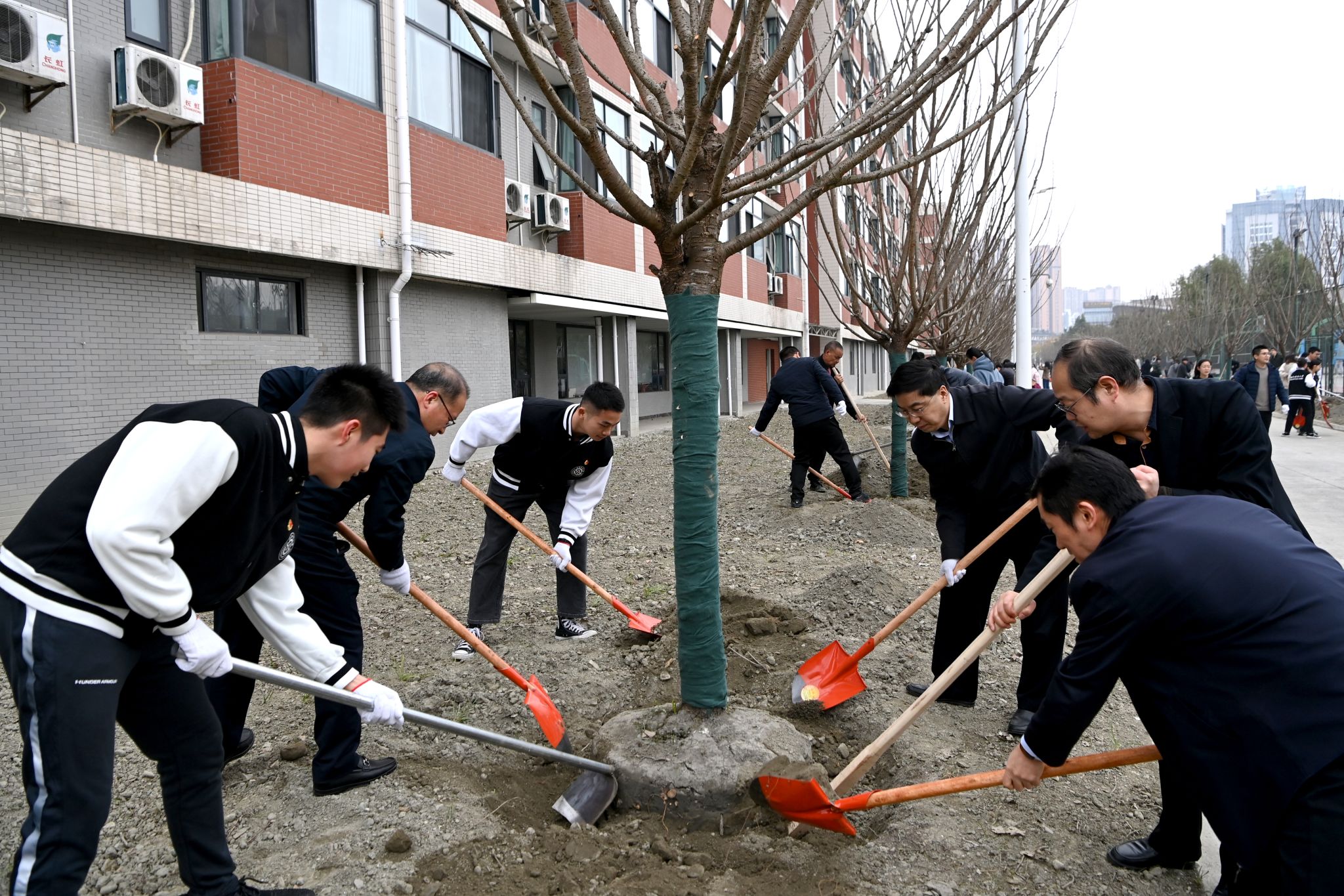 春意滿園萬物蘇,植樹護綠正當時。3月12日,學校在柳林、光華兩校區組織開展植樹護樹活動。黨委書記趙建軍,黨委副書記、校長李永強,黨委副書記謝紅,黨委常委、副校長史代敏、李志生、王擎,各職能部門、學院(研究院)負責人及師生代表參加活動。