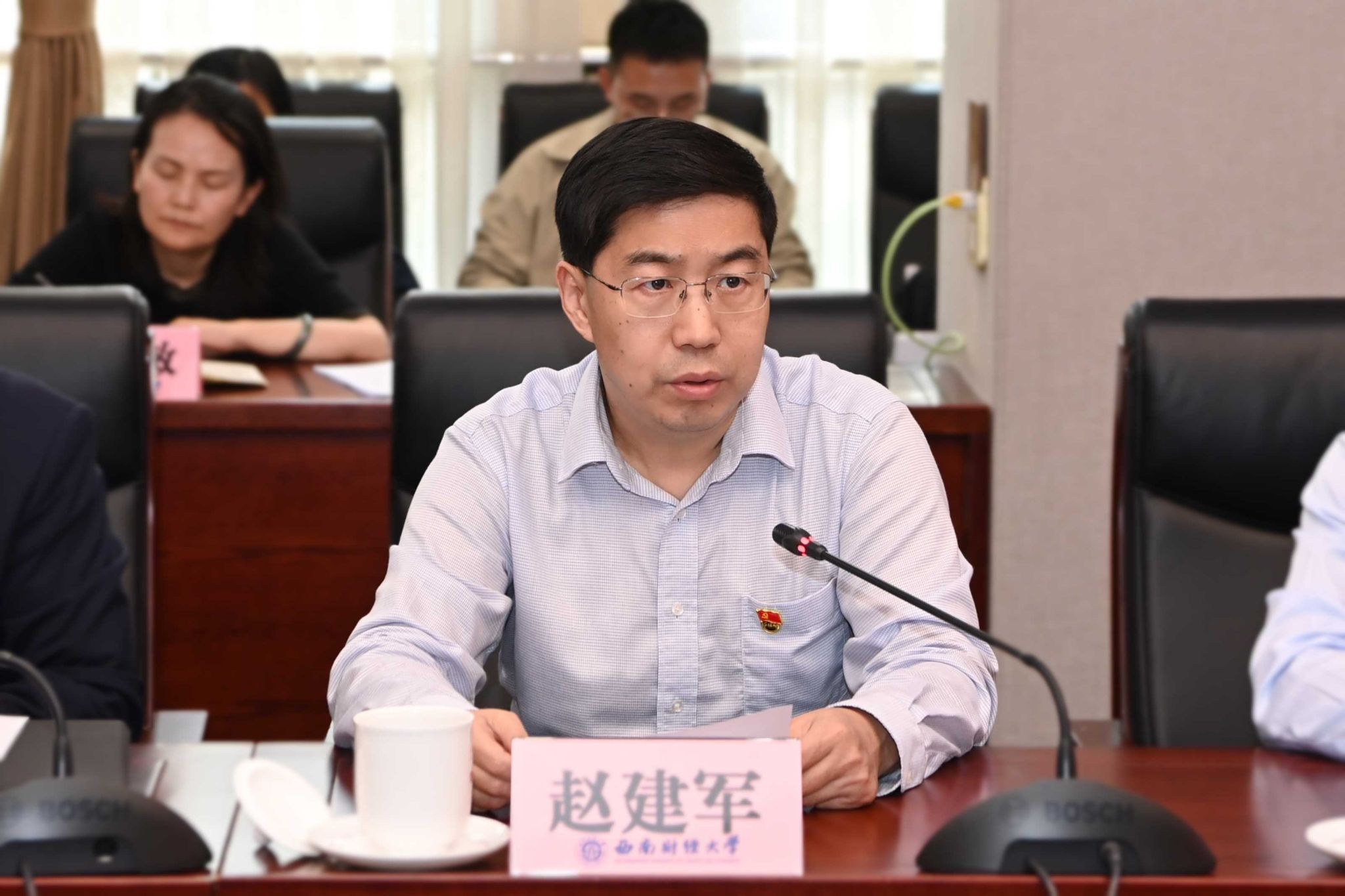 趙建軍指出,在全黨開展黨紀學習教育,是黨中央作出的重大決策部署,是加強黨的建設、推動全面從嚴治黨向縱深發展的重要舉措。黨中央高度重視,習近平總書記多次就開展黨紀學習教育發表重要講話、作出重要指示,為開展黨紀學習教育提供了重要遵循。趙建軍強調,要提高政治站位,深刻領會黨紀學習教育的重大意義,深刻認識開展黨紀學習教育是堅定擁護“兩個確立”、堅決做到“兩個維護”的必然要求,是深化黨的自我革命、推動全面從嚴治黨向縱深發展的必然要求,是堅持教育、科技、人才一體統籌推進、加快建設教育強國的必然要求,是全面推動“新財經”戰略升級、加快建設財經特色鮮明的世界一流大學的必然要求。要增強政治自覺,牢牢把握黨紀學習教育的目標要求,深入學習習近平總書記關于黨的自我革命的重要思想、關于黨的紀律建設的重要論述和關于黨紀學習教育的重要指示精神,聚焦解決一些黨員、干部對黨規黨紀不上心、不了解、不掌握等問題,組織黨員特別是領導干部認真學習《中國共產黨紀律處分條例》,進一步增強政治定力、紀律定力、道德定力、抵腐定力,始終做到忠誠干凈擔當。要強化政治擔當,全面落實黨紀學習教育的重點任務,原原本本抓好《條例》學習,以案為鑒抓好警示教育,學深悟透抓好培訓解讀,春風化雨抓好文化涵育,從嚴從實抓好檢視整改,把學習貫徹《條例》貫穿黨紀學習教育始終,注重融入日常、抓在經常,營造全員參與、人人學紀濃厚氛圍,讓黨員干部師生員工受警醒、明底線、知敬畏。要壓實政治責任,切實加強黨紀學習教育的組織領導,進一步強化責任落實、示范引領、督促指導、宣傳引導、統籌兼顧,確保圓滿完成各項任務,扎實推動黨紀學習教育取得實效,以優異成績慶祝中華人民共和國成立75周年、獻禮西財百年華誕。