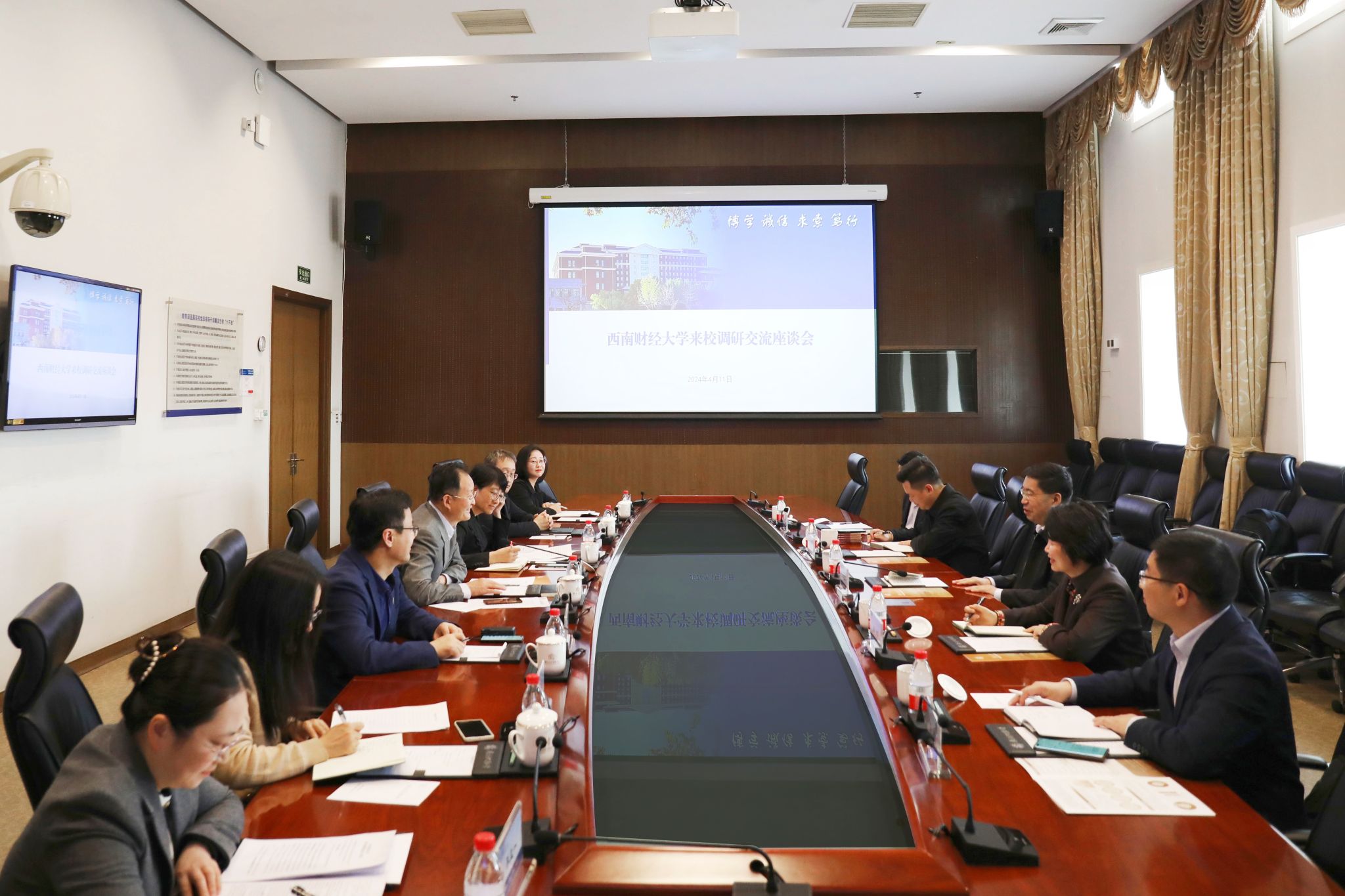 在中央財經大學交流時,馬海濤從人才培養、學科建設、科學研究、師資隊伍建設等方面介紹了中央財經大學近年來的發展情況。他表示,長期以來,兩校保持良好的溝通聯系,是親密的合作伙伴,今后,期待雙方在前期友好合作的基礎上,立足兩校“雙一流”建設發展需求,進一步加強交流、深化合作,充分發揮財經類高校優勢,共同開創財經類高校合作共贏新局面。趙建軍詳細介紹了我校在學科建設、人才隊伍建設、立德樹人等方面的基本情況。他表示,中央財經大學與西南財經大學有著相類似的學科背景,近年來,兩校交往密切、溝通順暢。今后,希望兩校能進一步加強溝通交流,不斷拓展工作思路、拓寬合作領域,互惠互利,共贏發展。