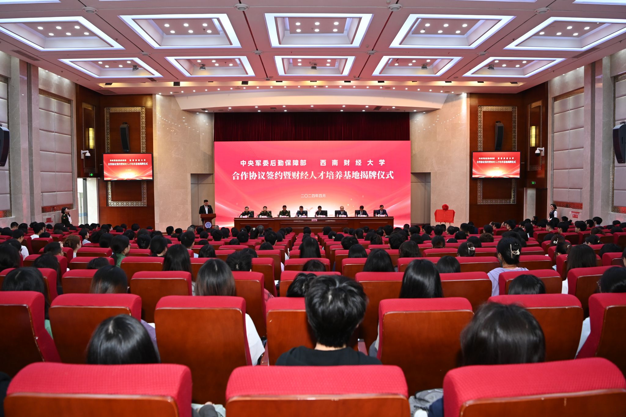 4月23日,學校與中央軍委后勤保障部合作協議簽約暨財經人才培養基地揭牌儀式在弘遠樓105會議室舉行。軍方領導,我校黨委書記趙建軍,黨委副書記、校長李永強,黨委副書記、紀委書記孫殿明,黨委常委、副校長桂富強出席儀式。