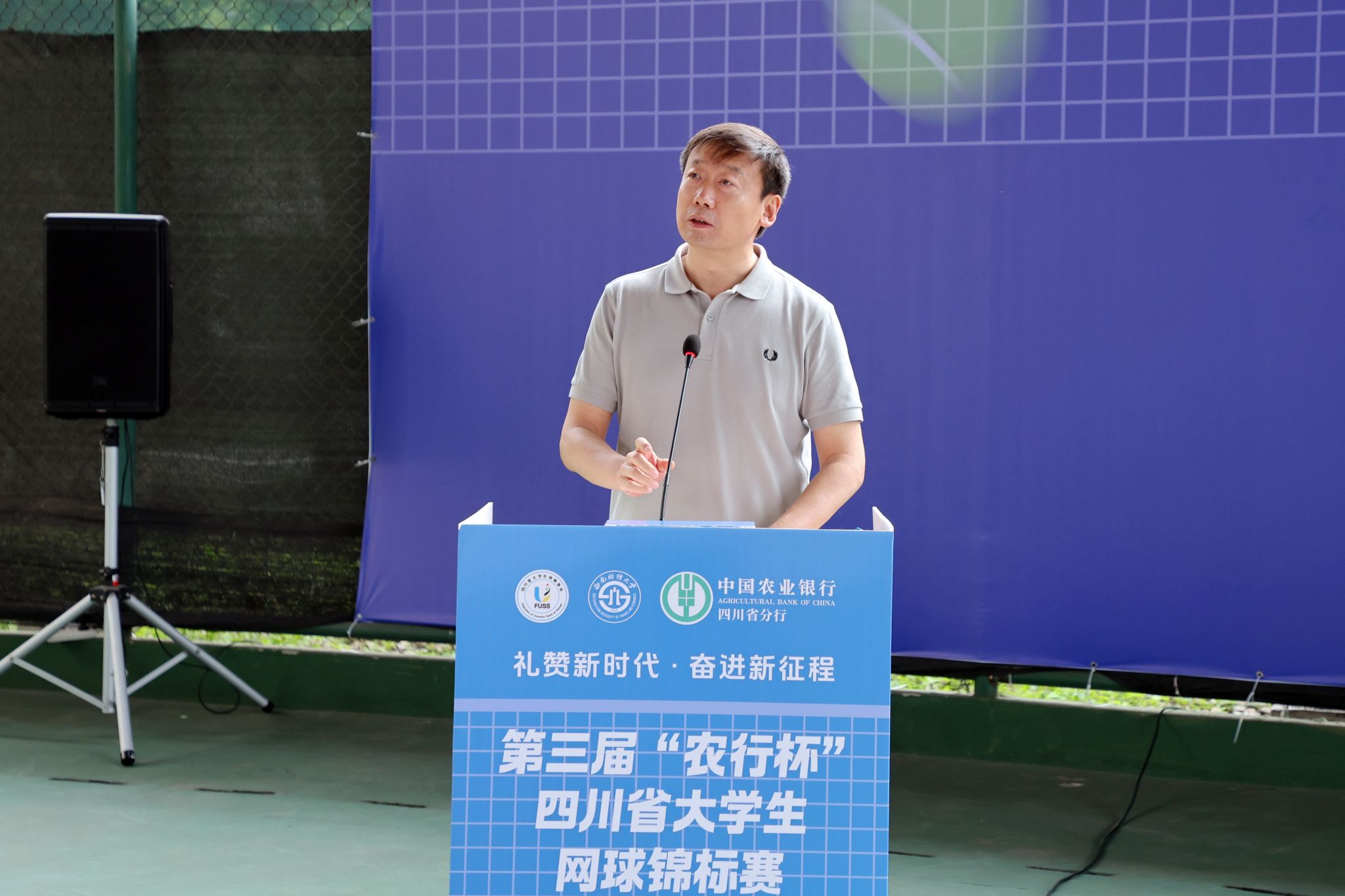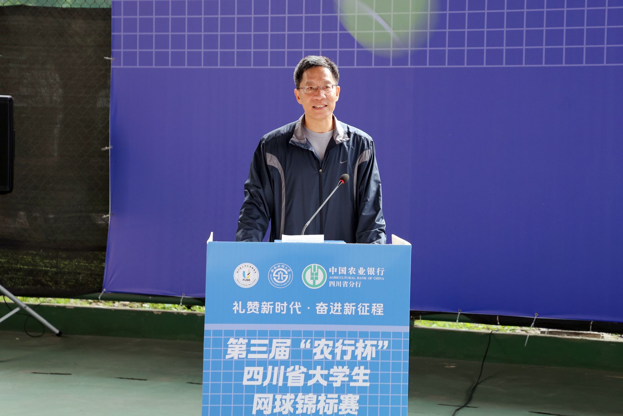 趙建軍表示,“體育承載著國家強盛、民族振興的夢想。體育強則中國強,國運興則體育興”。西南財經大學始終堅持把體育作為促進學生全面發展的重要舉措,近年來,承辦了第31屆世界大學生夏季運動會排球項目比賽、中國大學生籃球聯賽四川省基層賽、四川省“貢嘎杯”青少年體育聯賽、“農行杯”四川省大學生網球錦標賽等賽事,學校足球、籃球、網球等項目在國內有關重要比賽中取得了優異成績。本次錦標賽既是四川高校網球競技水平的集中匯演,也是競技體育事業發展成果的集中展示,更是踐行體育強國戰略的生動實踐,必將有助于促進競技體育與群眾體育、學校體育與全民體育有機融合。他希望全體運動員釋放激情、燃燒斗志、享受比賽、收獲友誼,全體裁判員和工作人員恪盡職守、公正裁決、真誠服務,讓大家在健康、活力和創造中度過一段美好而有意義的時光。