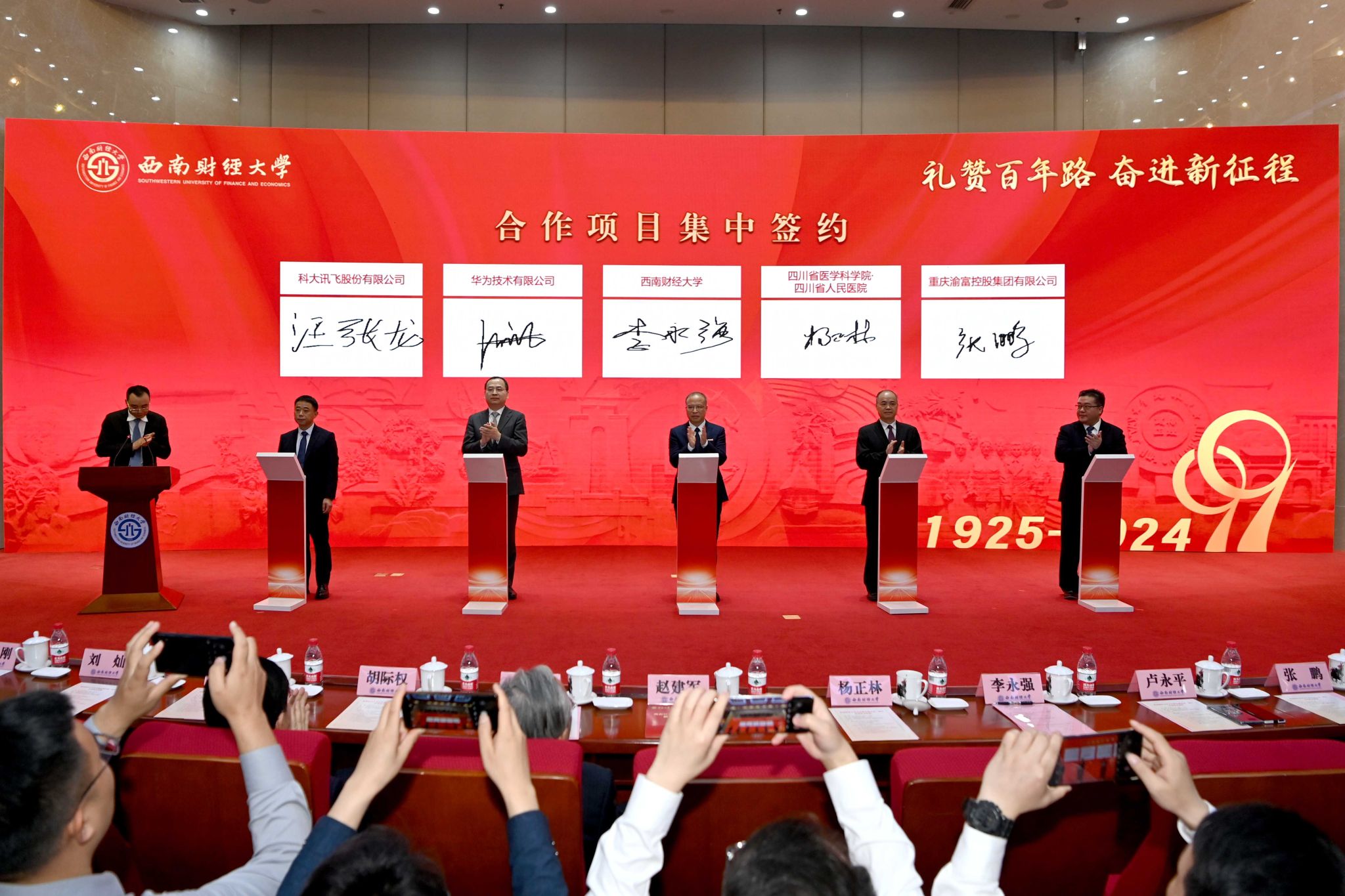 趙建軍、李永強共同揭幕西南財經大學百年校慶標識,并為西南財經大學深圳高等研究院(籌)揭牌。