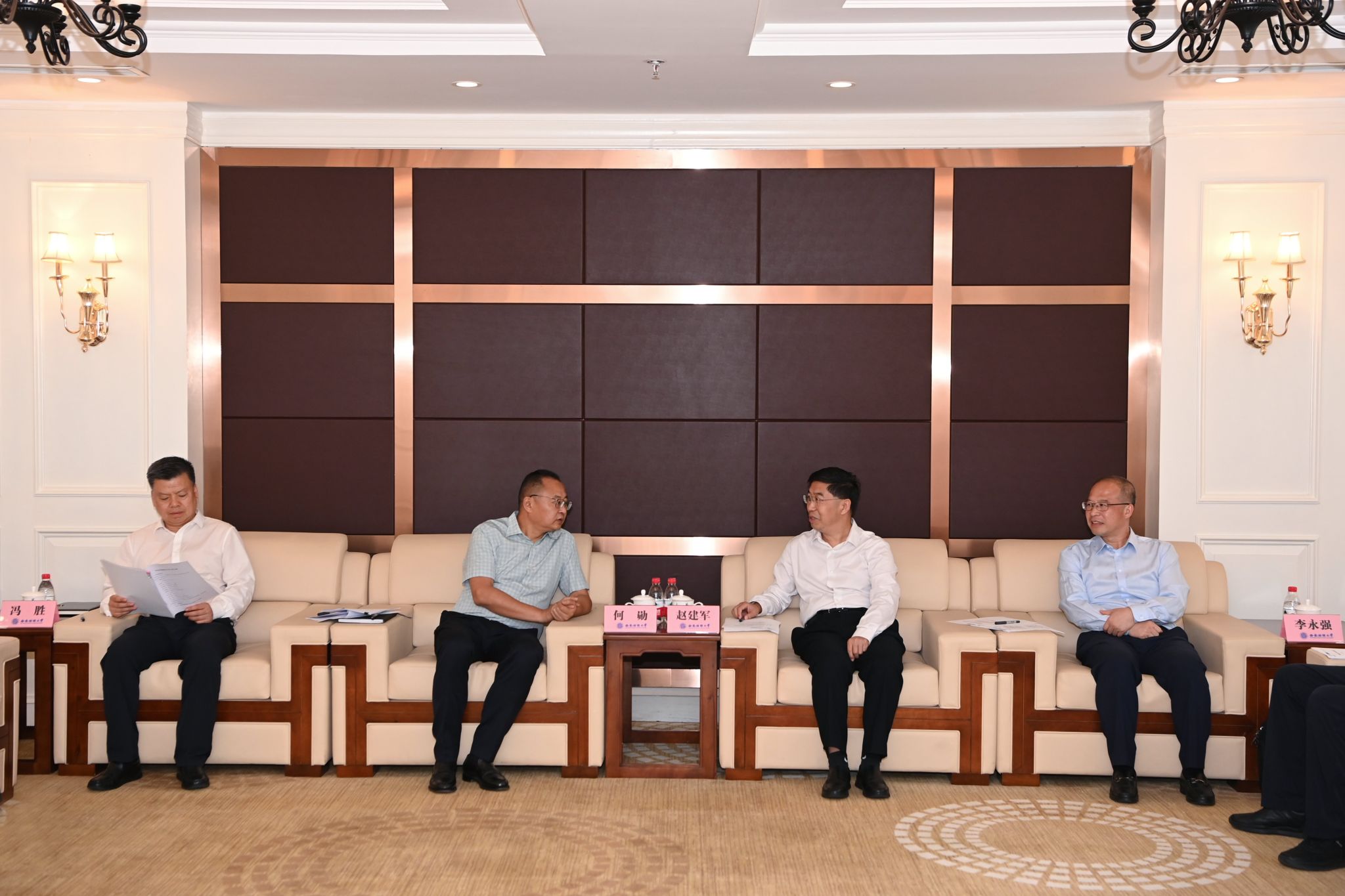 6月6日上午,青羊區委書記何勛,區委副書記、區長馮勝,區委常委、常務副區長彭茚,區政協副主席、區委辦主任鄧立新等一行來校調研座談。黨委書記趙建軍,黨委副書記、校長李永強,黨委常委、副校長桂富強出席座談會。
