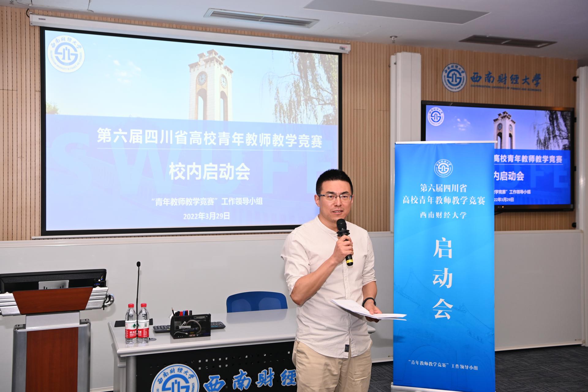 3月29日下午,為更好組織我校教師參加第六屆四川省高校青年教師教學競賽,提升團隊核心競爭力,學校在柳林校區格致樓J303學術廳召開校內競賽啟動會。黨委常委、副校長歐兵、李永強,參賽教師、學院指導團隊以及相關職能部門負責人出席了啟動會。校工會常務副主席楊熳霞主持會議。