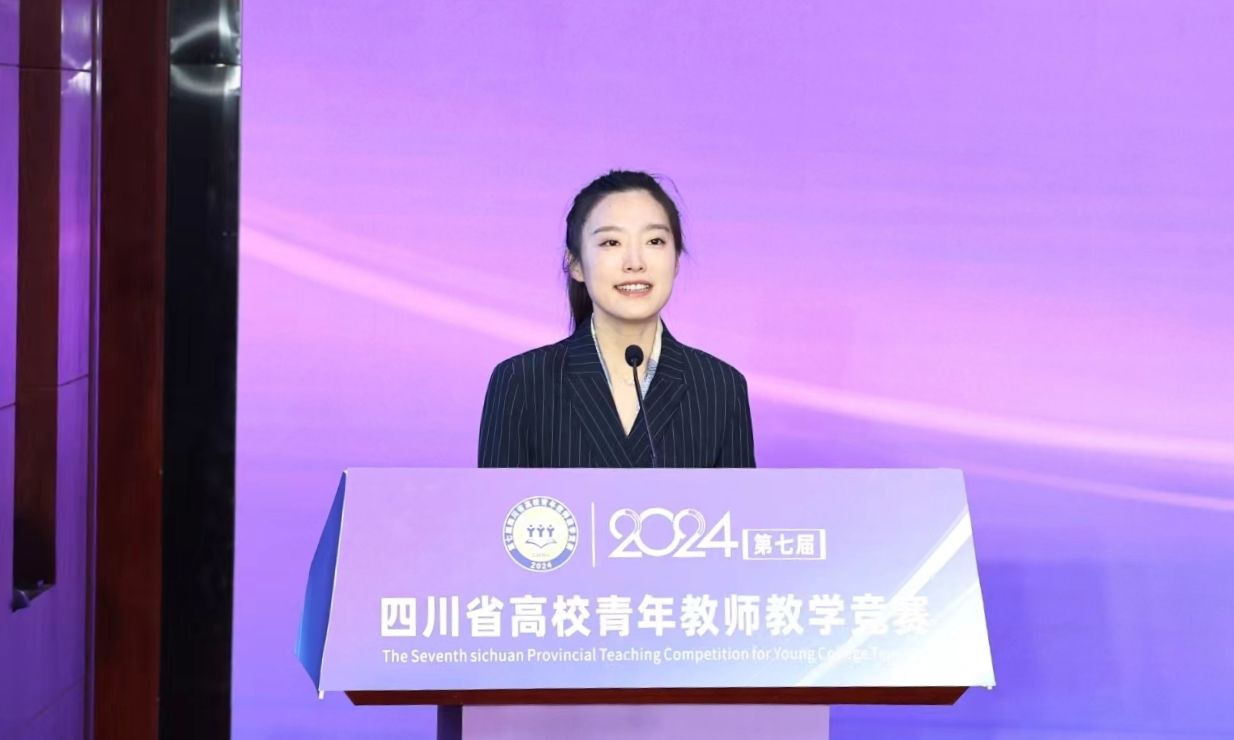 在28日下午舉行的決賽總結(jié)表彰大會(huì)上,四川省總工會(huì)黨組成員、副主席彭闖和四川省教育廳二級(jí)巡視員楊建國(guó)等領(lǐng)導(dǎo)為獲獎(jiǎng)教師頒獎(jiǎng),宋婧琳代表參賽選手發(fā)言。她表示,將秉持以學(xué)生為中心、跨學(xué)科融合、以科研推動(dòng)教學(xué)的教育理念,不忘初心、共同攜手為熱愛(ài)的高等教育事業(yè)挺膺擔(dān)當(dāng)。