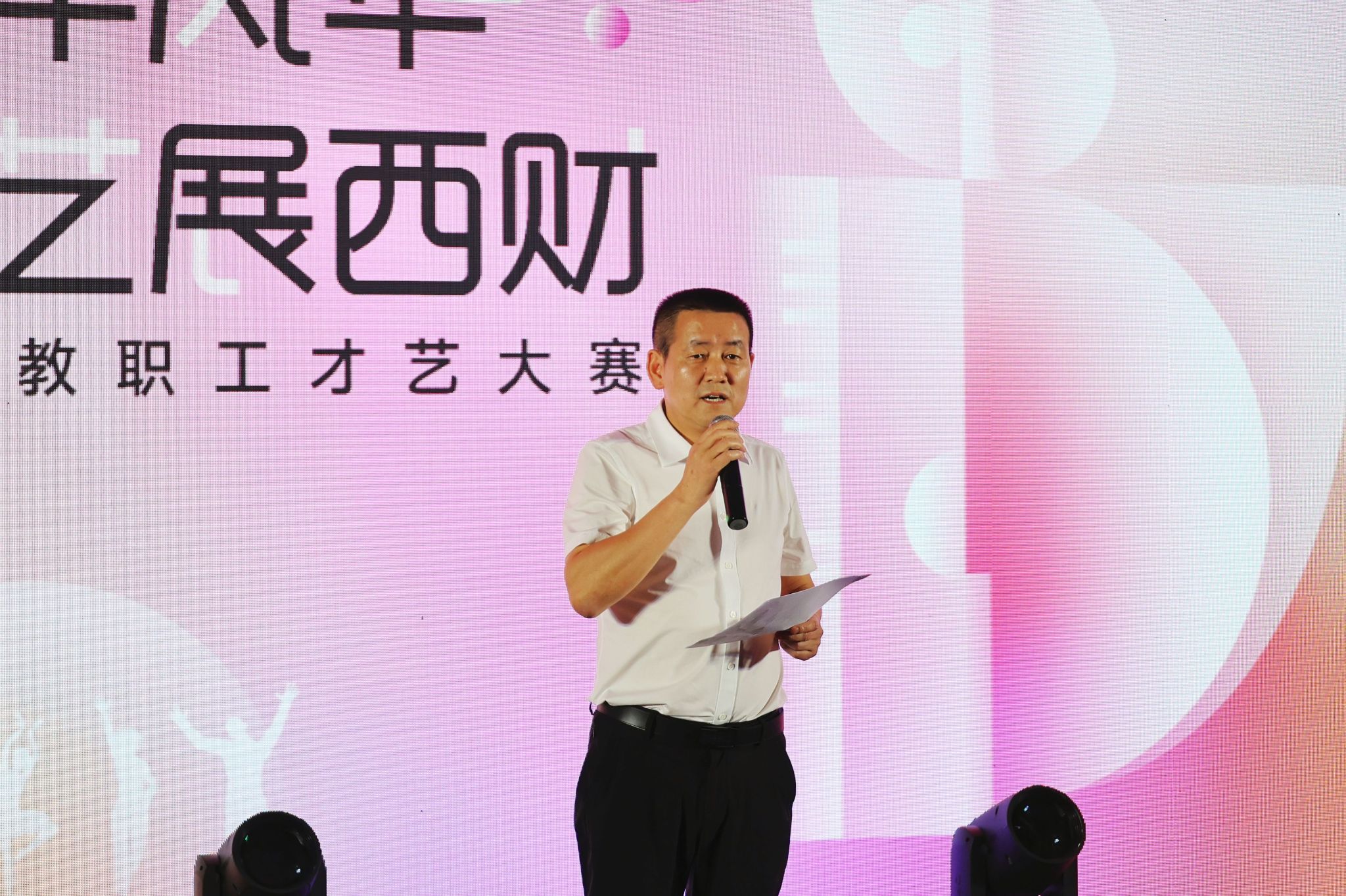 明海峰表示,教職工才藝大賽是教職工藝術才華的展示,更是一次心靈交流和文化盛宴。大賽是向百年校慶獻禮、濃厚校園文化氛圍、激勵全校師生傳承西財精神的重要舉措,希望通過比賽激發廣大師生以更飽滿的熱情和斗志,為學校高質量發展貢獻力量。