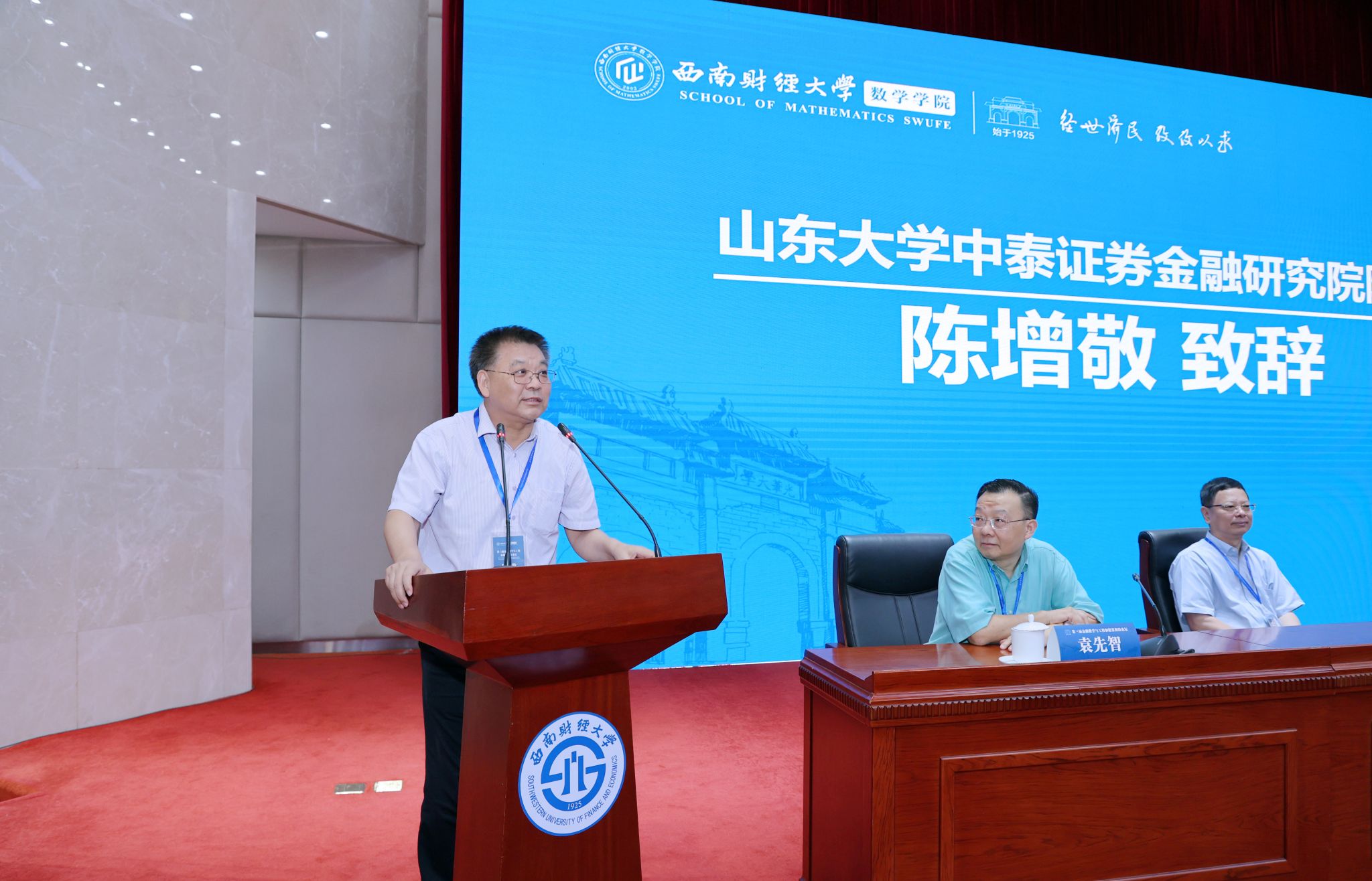 學校黨委常委、副校長馬永強,中國科學院院士、山東大學教授彭實戈和山東大學中泰證券金融研究院院長陳增敬致開幕辭,學校數學學院執行院長馬敬堂主持開幕式。