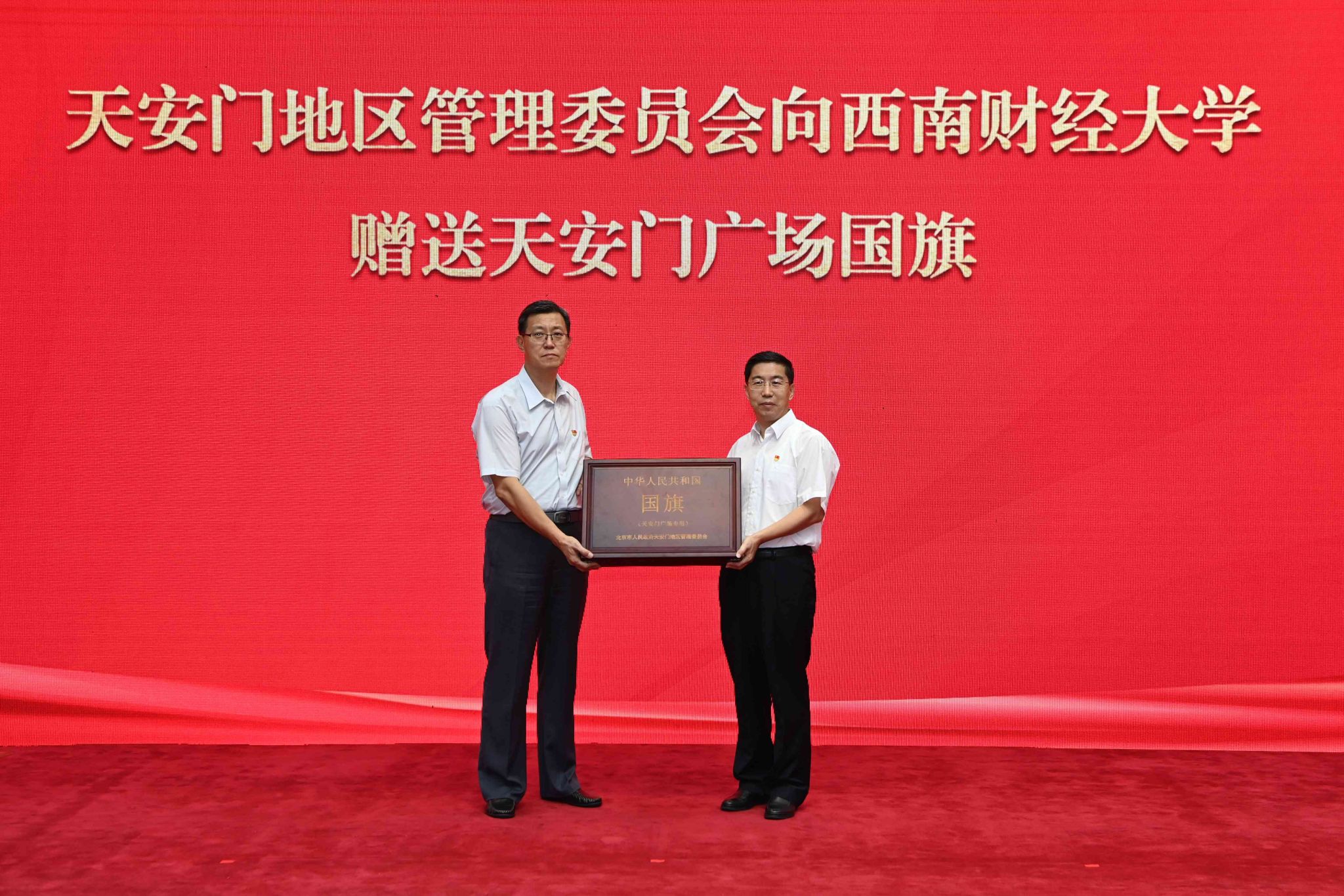 趙建軍代表學(xué)校黨委向天安門地區(qū)管理委員會表示熱烈歡迎和誠摯感謝。他指出,每一面國旗都承載著無數(shù)先輩的奮斗與犧牲,凝聚著全體中國人民的愛國情懷和共同理想。這面國旗是西南財大的寶貴財富,是全校師生的共同榮譽,西財人倍感無上光榮、無盡榮耀,深感責(zé)任重大、使命重大。他強調(diào),要在國旗指引下賡續(xù)紅色基因、厚植愛國情懷,鑄牢教育忠誠、勇?lián)耸姑蹔^進力量、譜寫發(fā)展新篇,加快建設(shè)財經(jīng)特色鮮明的世界一流大學(xué),以實際行動和優(yōu)異成績獻禮百年西財、服務(wù)強國建設(shè)。